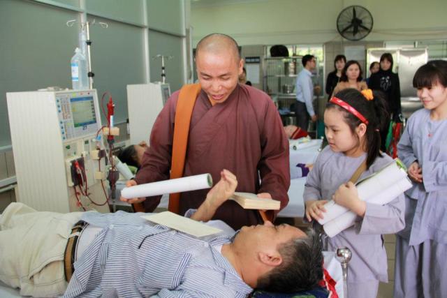 Để mừng Xuân Quý Tỵ sắp tới, nhóm từ thiện mang tên “Làn Gió Thoảng” hoạt động dưới sự bảo trợ của Thiền viện Trúc Lâm Sùng Phúc, mong muốn được chia sẻ niềm ước ao, khát khao nhỏ bé của những bệnh nhân có hoàn cảnh khó khăn nên vào ngày mùng 01/02/2013 ( nhằm ngày 21 tháng Chạp Nhâm Thìn) đã thỉnh cầu chư Tăng Thiền viện Trúc Lâm Sùng Phúc và được Quý Thầy hứa khả cùng đến thăm, chúc phúc, tặng quà các bệnh nhân phải chạy chữa thân tại Khoa Thận nhân tạo– Bệnh viện Bạch Mai. Đây là món quà nhỏ hỗ trợ bệnh nhân ngoại tỉnh thêm đủ tiền mua vé tàu, vé xe ôtô khách để về quê ăn Tết cùng gia đình.