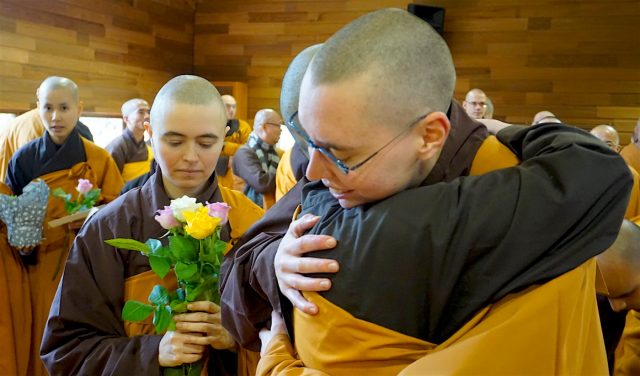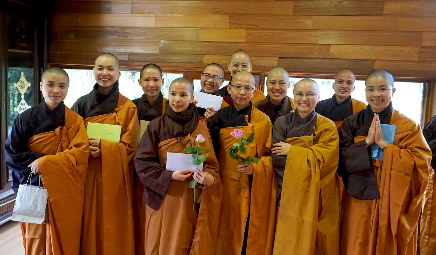 Giờ phút đón nhận lá thư soi sáng với những bông hoa tươi thắm cùng những lời khích lệ chứa đầy tình thương đã trở thành những phút giây huyền thoại. Chúng con xin nguyện làm mới mình trong từng hơi thở ý thức, từng bước chân chánh niệm để xứng đáng là sự tiếp nối đẹp của chư Bụt, chư Tổ, Thầy và Tăng thân.