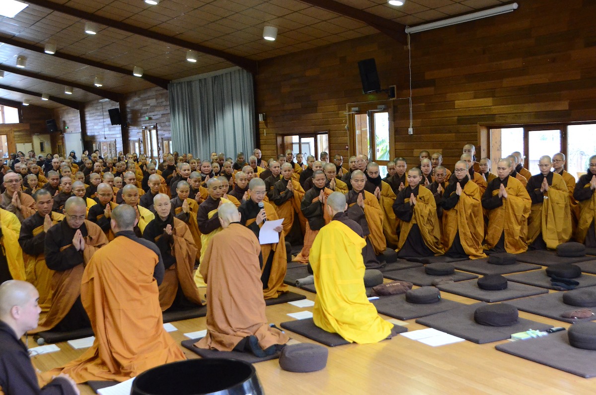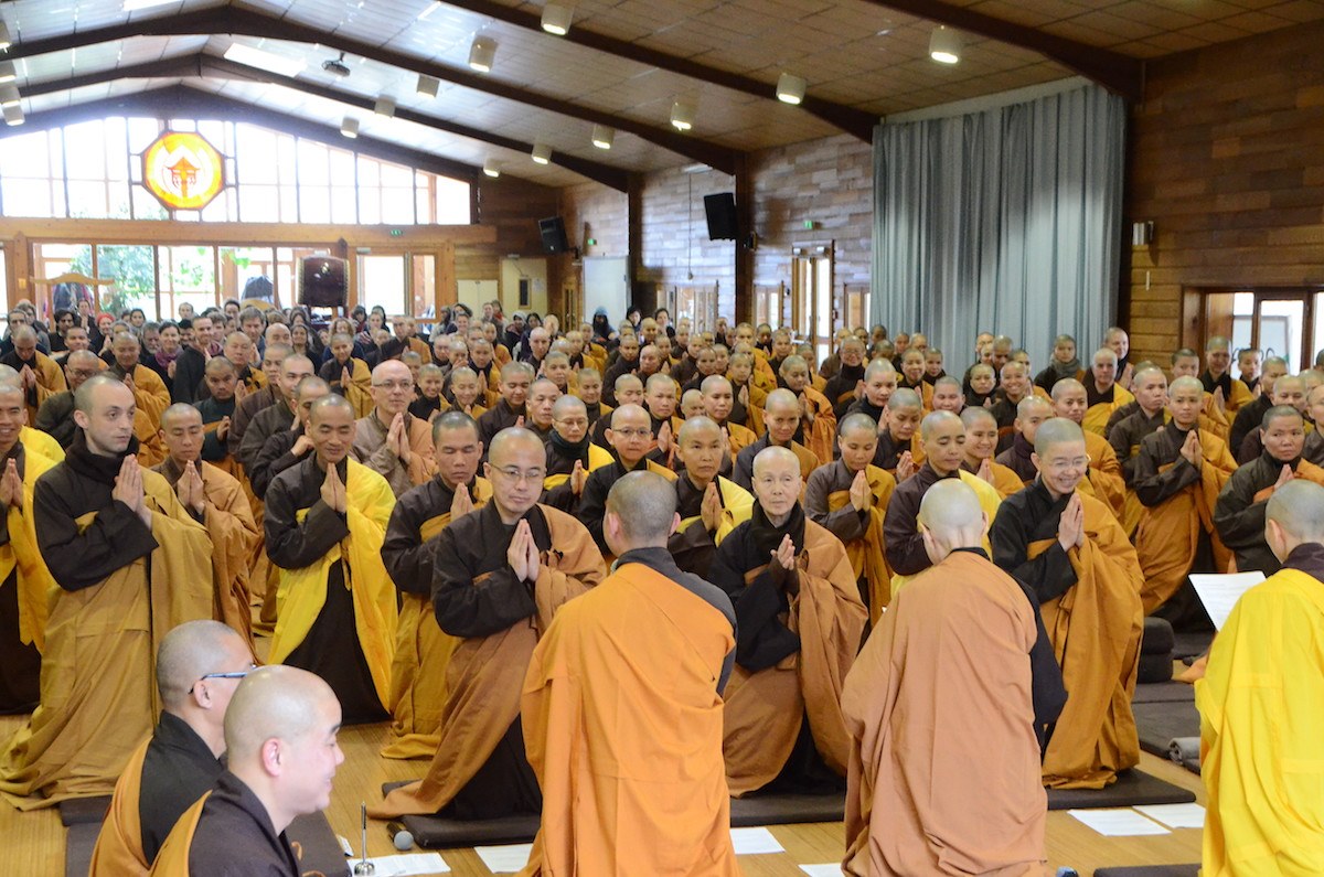 Theo tin từ trang nhà Làng Mai, sáng ngày 13/12/2019, tại Thiền đường Nước Tĩnh, xóm Thượng, Làng Mai đã diễn ra lễ Tự tứ kết thúc 90 ngày an cư kiết thu năm 2019. Ngày Tự tứ được xem là ngày Tết của những người con Bụt, xuất gia cũng như tại gia. Đây cũng là ngày Bụt hoan hỷ, chư Tăng hoan hỷ.