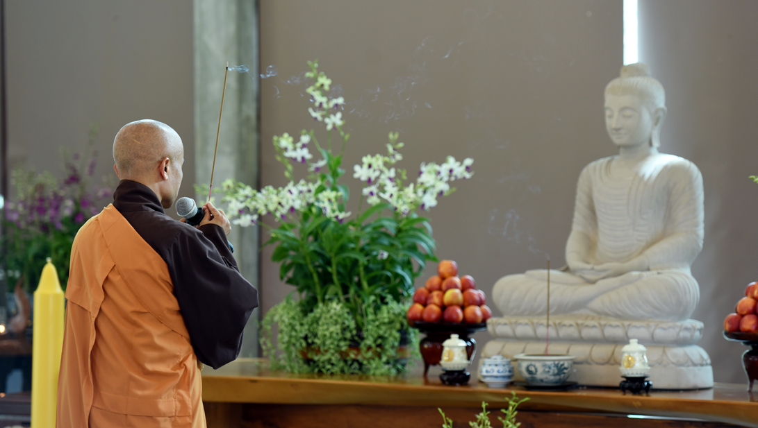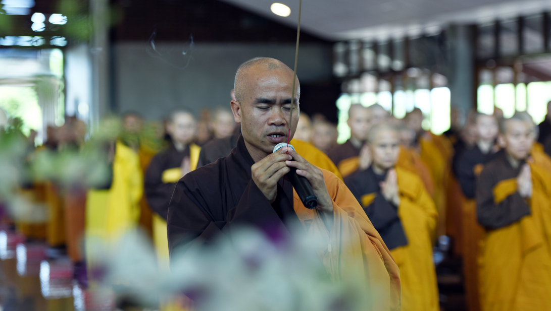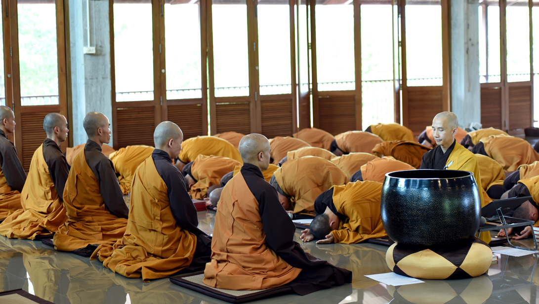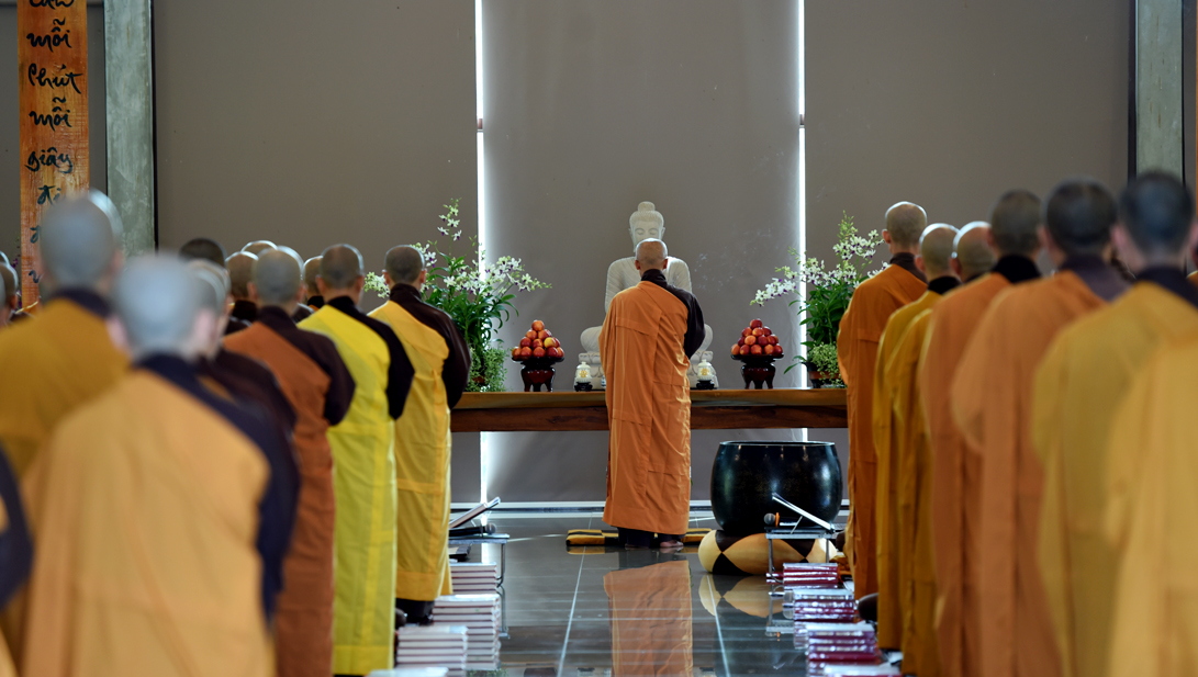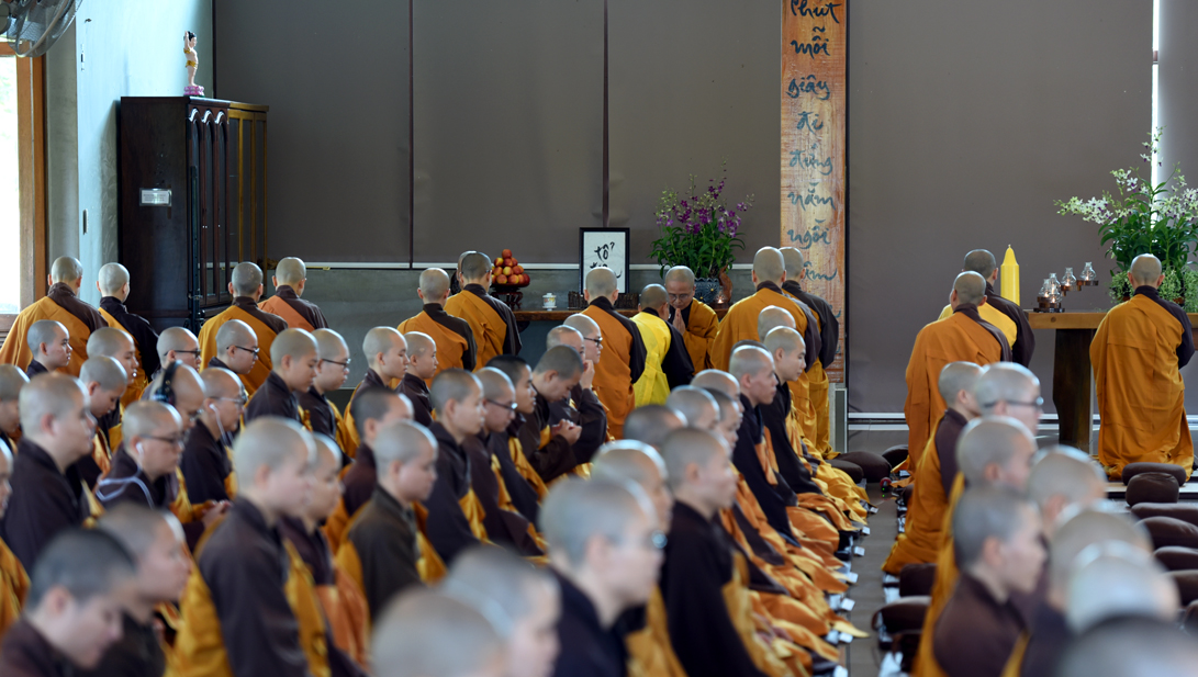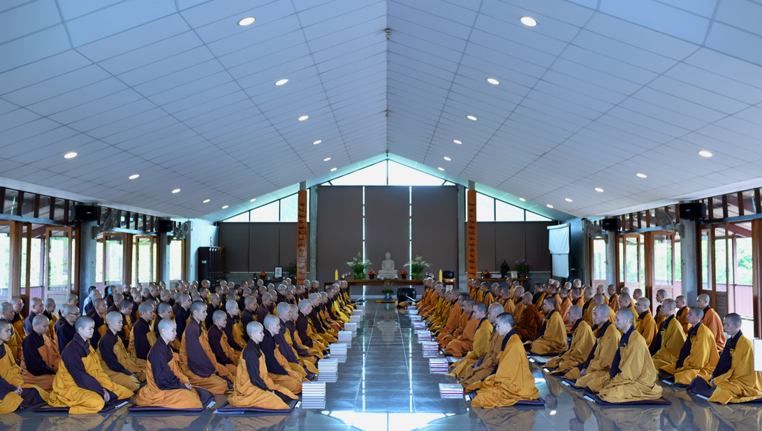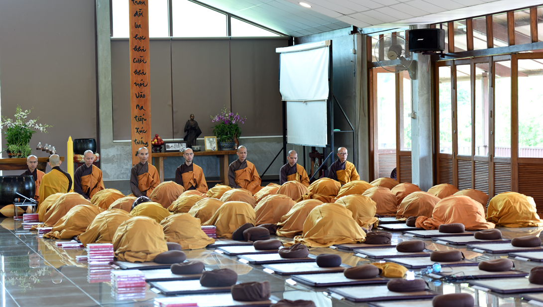 Lúc 9h00, đại chúng vân tập tại thiền đường Voi Trắng để cử hành lễ đối thú an cư kiết hạ và cúng ngọ. Chiều cùng ngày, đại chúng tổ chức lễ cúng thí thực cầu nguyện hòa bình cho thế giới.