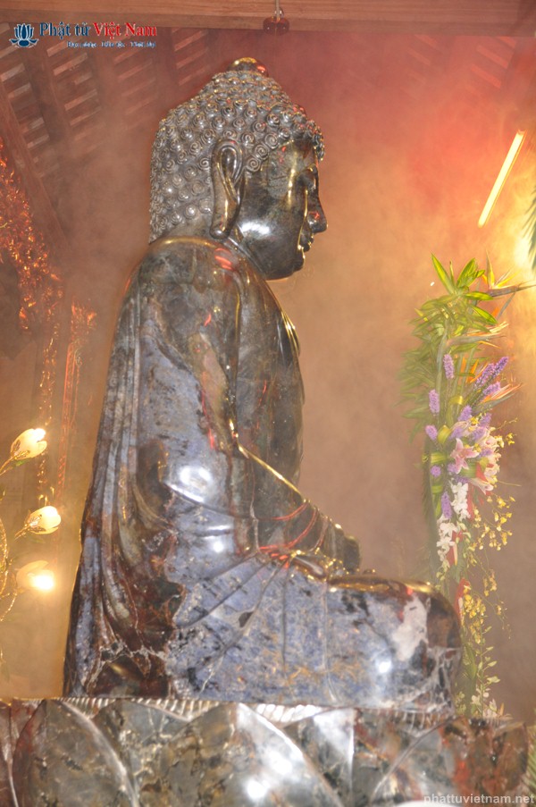 Được biết Lam Ngọc Thích Ca Phật Tổ tượng do nghệ nhân Nguyễn Văn Cam và các nghệ nhân Ngũ Hành Sơn (Đà Nẵng) chế tác từ khối lam ngọc nặng gần 30 tấn, khi tượng hoàn thành nặng 8,6 tấn, có giá trị vật chất trên 1.000.000 usd. Lam Ngọc Thích Ca Phật Tổ tượng đã được Trung Tâm Ngọc Học và giám định vàng bạc đá quý DOJI giám định chất lượng tại Chứng thư số 10.726 ngày 12/08/2010.