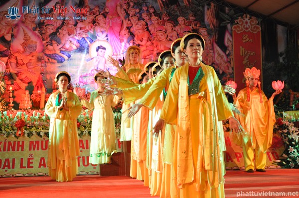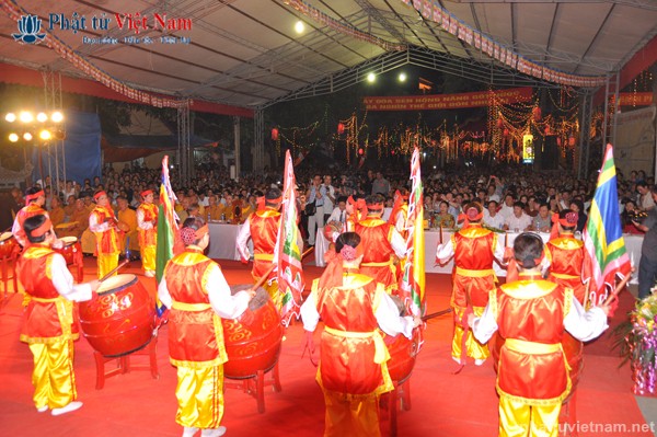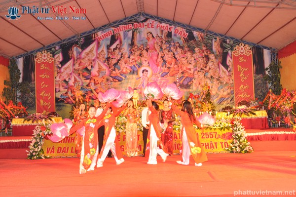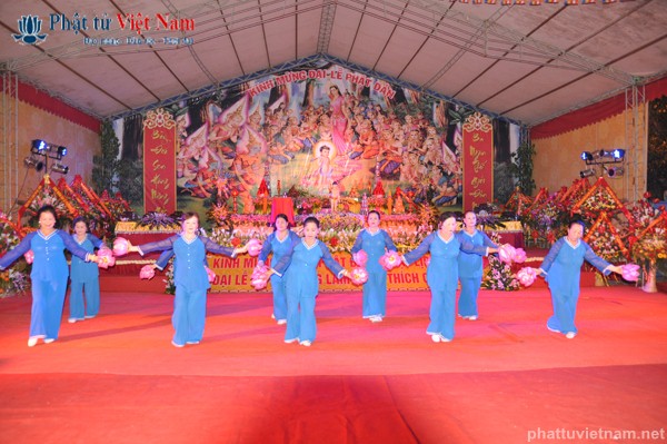 Đại lễ Phật đản bắt đầu khai mạc với các chương trình văn nghệ và các tiết mục biểu diễn dàn trống do đoàn nghệ thuật dân gian biểu diễn chào mừng.