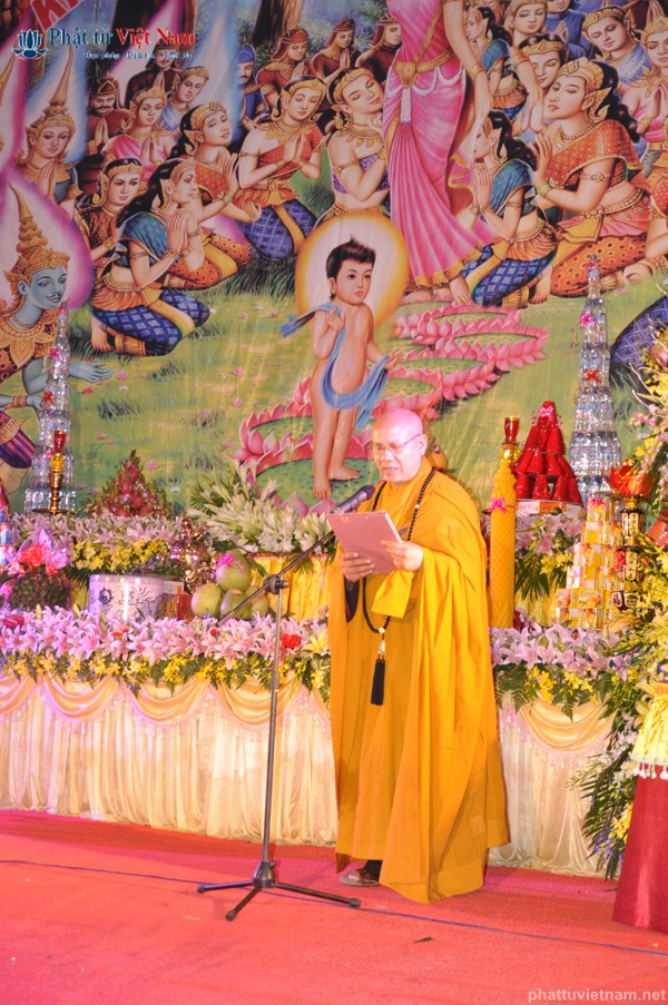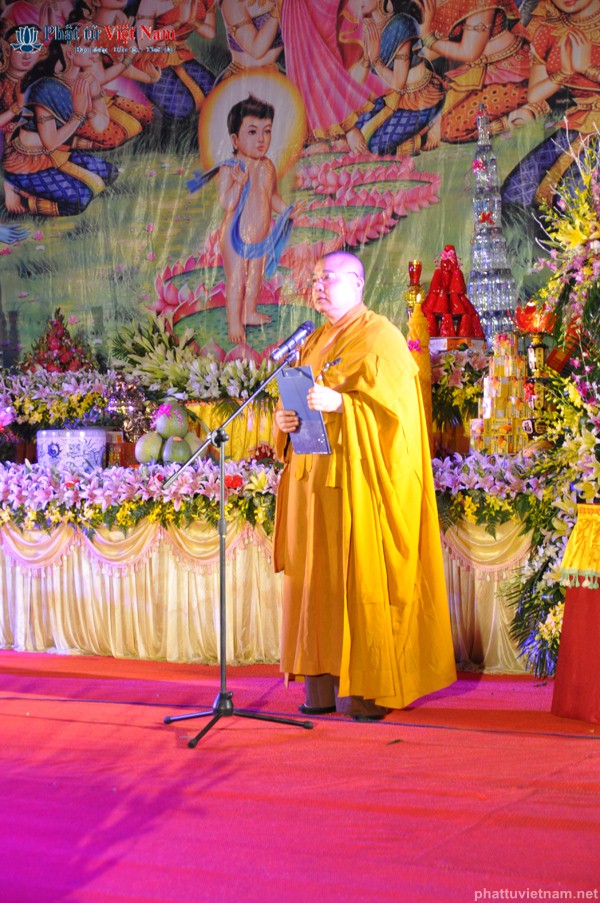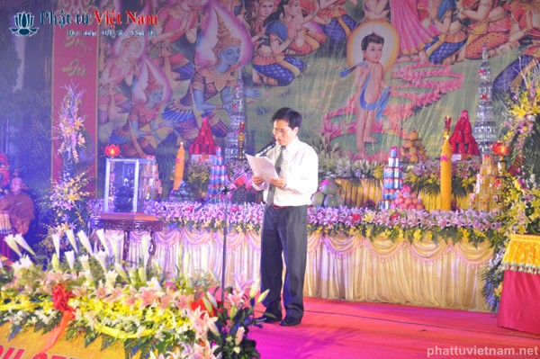 Hòa thượng Thích Quảng Tùng – Phó Chủ tịch HĐTS kiêm Trưởng Ban Từ thiện xã hội TW GHPGVN – Trưởng BTS GHPGVN tỉnh Lạng Sơn đọc Diễn văn khai mạc Đại lễ Phật đản.