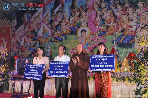 Tại đại lễ BTS GHPGVN tỉnh Lạng Sơn và các Phật tử Tổ Tố Liên đã trao tặng trên 150.000.000đ để ủng hộ xây dựng trường học; hỗ trợ sinh viên, các học sinh nghèo vượt khó trên địa bàn tỉnh Lạng Sơn…