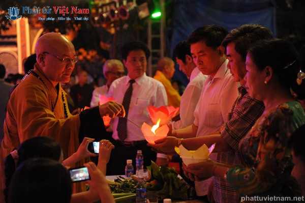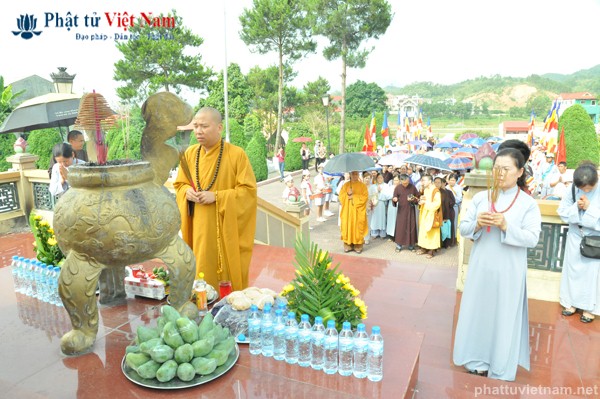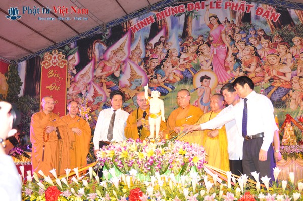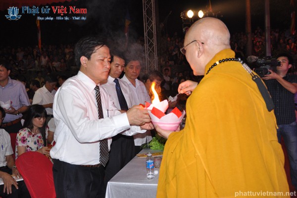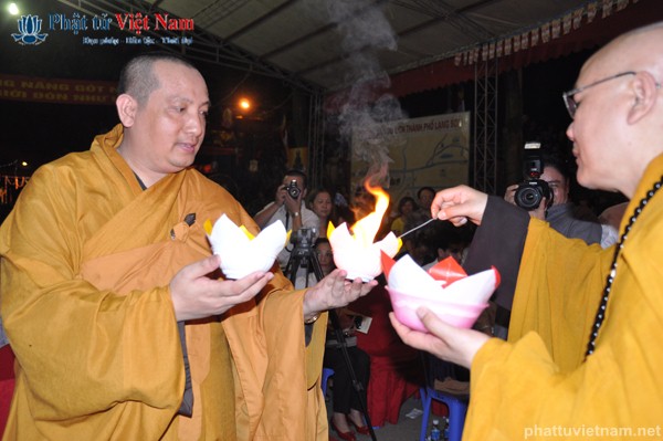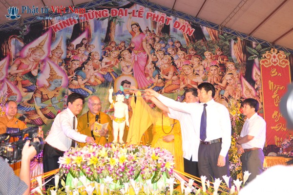 Cũng trong đại lễ hàng nghìn phật tử và bà con nhân dân đã xếp hàng tham dự lễ tắm Phật nhân ngày Đản sinh. Hòa thượng Thích Quảng Tùng đã thực hiện nghi lễ truyền đăng cho hàng ngàn Tăng ni, Phật tử và nhân dân cùng nhau thắp sáng 10.000 ngọn hoa đăng thả xuống sông Kỳ Cùng mong muốn mưa thuận gió hòa, chúng sinh an lạc…