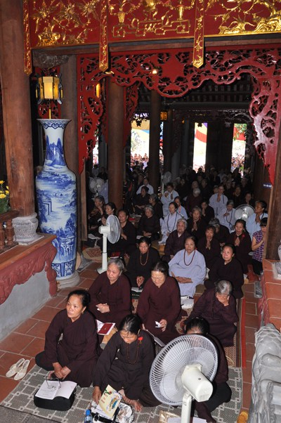 Từ sáng sớm. Hàng nghìn bà con nhân dân Phật tử đã có mặt để dự lễ. Sau khi Chư Tăng tác pháp Tự tứ. Đại lễ Vu Lan được cử hành trong không khí trang nghiêm thành kính.
