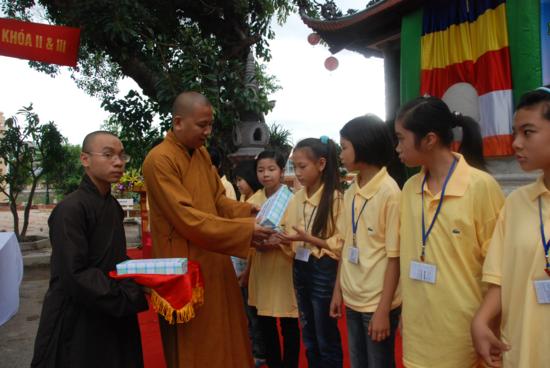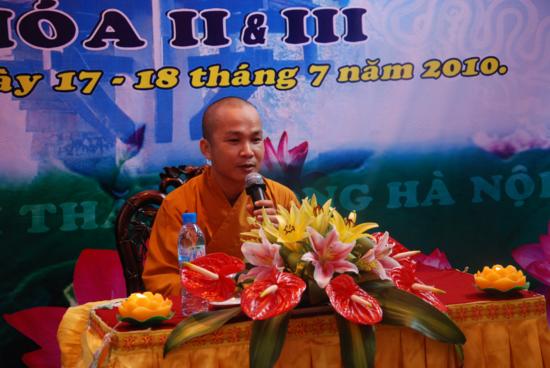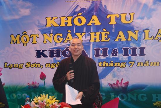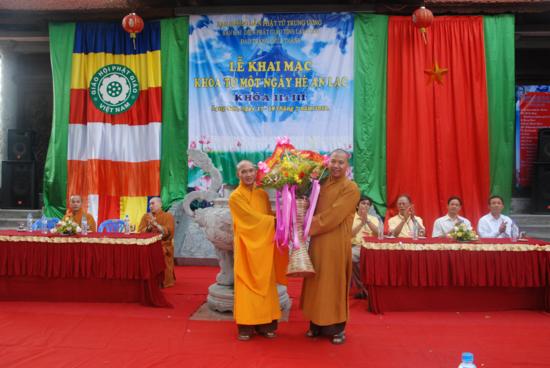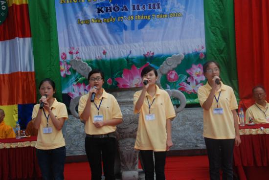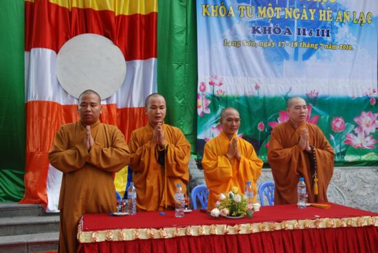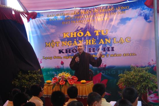 TT Thích Thanh Điện thay mặt TW GHPGVN ban đạo từ và tặng hoa chúc mừng: Thượng toạ đã tán thán công đức của chư tôn đức Ban đại diện Phật giáo tỉnh Lạng Sơn , Đại đức trụ trì chùa Thành trong việc tổ chức Khoá tu, cũng như sự nỗ lực tu học của các bạn Thanh thiếu niên Phật tử tham dự khoá tu II và III lần này. Thượng toạ cũng mong muốn Phật giáo tỉnh Lạng Sơn trong thời gian tới sẽ tổ chức nhiều chương trình hoạt động cho Thanh thiếu niên Phật tử hơn nữa , đây là một môi trường giáo dục vô cùng hữu ích cho các bạn trẻ có cơ hội giao lưu học tập Phật phát, vui chơi lành mạnh , tránh được nhiều điều xấu và làm được nhiều việc thiện trong xã hội.