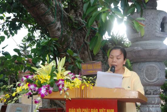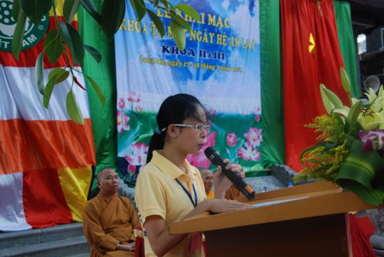 Đại diện thanh thiếu niên Phật tử tham dự Khoá tu “ Một ngày hè an lạc” phát biểu cảm tạ chư tôn đức Quý thầy đã không quản ngại khó khăn tổ chức cho chúng con một ngày hè lạc, đây là cơ hội để chúng con được tu học, được tìm hiểu giáo lý Phật đà đồng thời giúp chúng con hình thành nhân cách hoàn thiện sống có ích, thực hiện ước mơ của mình đem lại lợi ích cho đời và đạo ngày càng sáng tươi.