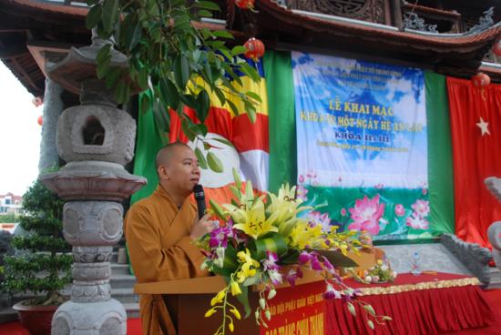 Sau nghi lễ niệm hồng danh đức Bản sư, ĐĐ Thích Quảng Truyền phát biểu khai mạc Khoá tu “Một ngày hè an lạc”. Đại đức đã nhấn mạnh đây là một hoạt động vô cùng hữu ích đối với Thanh thiếu niên Phật tử, với mục đích tạo điều kiện cho các em có điều kiện tiếp xúc với giáo lý của Đức Phật, xây dựng đời sống tinh thần lành mạnh, từ đó trở thành những công dân gương mẫu, những người con ngoan trò giỏi.