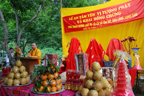 Trong một thời gian ngắn, nhóm bạn bè gia đình thân quyến và phật tử Phùng Văn Hùng đã không quản ngại gian khó, vận động đóng góp công đức phát tâm cúng dường chuông, tượng.