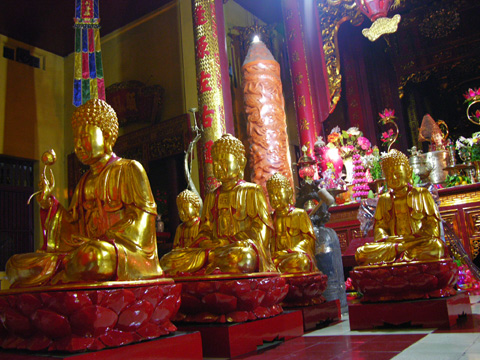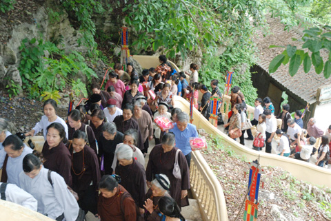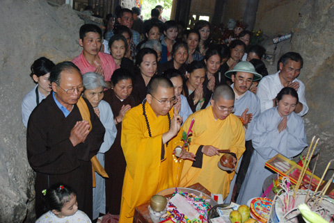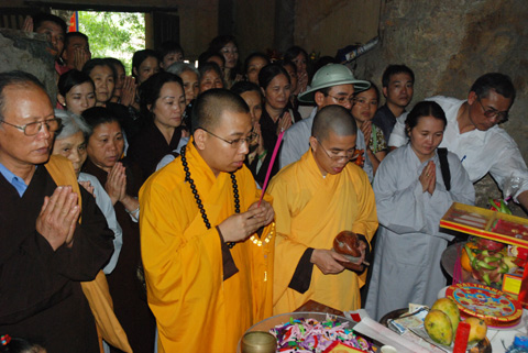 Chuông nặng 60,5 kg và 5 bức tượng Phật sơn son thiếp vàng do nhóm Phật tử Phùng Văn Hùng và Nguyễn Thị Xuân Loan thành tâm công đức.