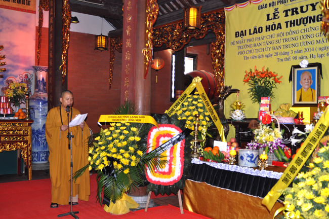 Tại lễ tưởng niệm Chư tôn đức và các vị lãnh đạo đã thành kính dâng hương tưởng niệm, ghi nhớ công đức sâu dày của cố Trưởng lão Hòa thượng. Toàn thể đại chúng thành kính thắp nén tâm hương kính dâng lên cúng dàng Giác linh cố Trưởng lão Hòa thượng, kính nguyện Giác linh Ngài Cao đăng thượng phẩm. Noi gương Ngài; Chư Tăng Phật tử tỉnh Lạng Sơn tiếp tục phát huy truyền thống “Hộ quốc An dân”, xây dựng ngôi nhà Phật giáo Việt Nam ngày càng phát triển trong lòng dân tộc.