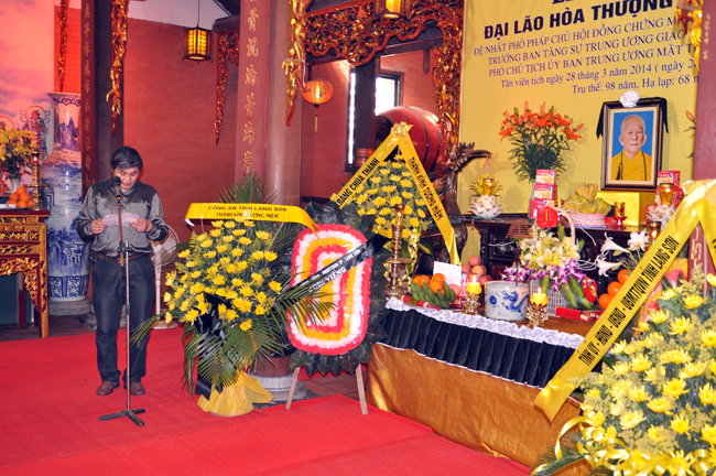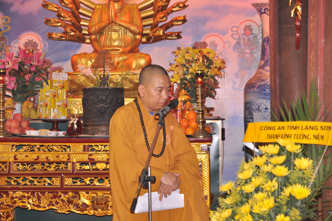 Quang lâm dự lễ tưởng niệm có: Đại đức Thích Quảng Truyền – Ủy viên HĐTS TW GHPGVN – Phó Trưởng Ban Hướng dẫn Phật tử TW – Phó Trưởng Ban Thường trực BTS GHPGVN tỉnh Lạng Sơn; Đại đức Thích Bản Chung – Phó Ban Trị sự GHPGVN tỉnh Lạng Sơn cùng chư tôn đức Tăng Ban Trị sự GHPGVN tỉnh Lạng Sơn; các vị Ủy viên Ban Trị sự GHPGVN; lãnh đạo các Tổ quy trong thành phố Lạng Sơn và hàng nghìn bà con nhân dân Phật tử cũng về dự lễ.