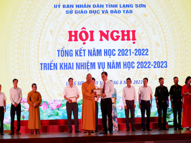 Thượng tọa Thích Quảng Truyền, Trưởng Ban Trị sự GHPGVN tỉnh Lạng Sơn; Đại đức Thích Bản Chung, Phó Trưởng ban Thường trực BTS GHPGVN tỉnh Lạng Sơn đã vinh dự được nhận kỷ niệm chương Vì sự nghiệp giáo dục của Bộ Giáo dục và Đào tạo.