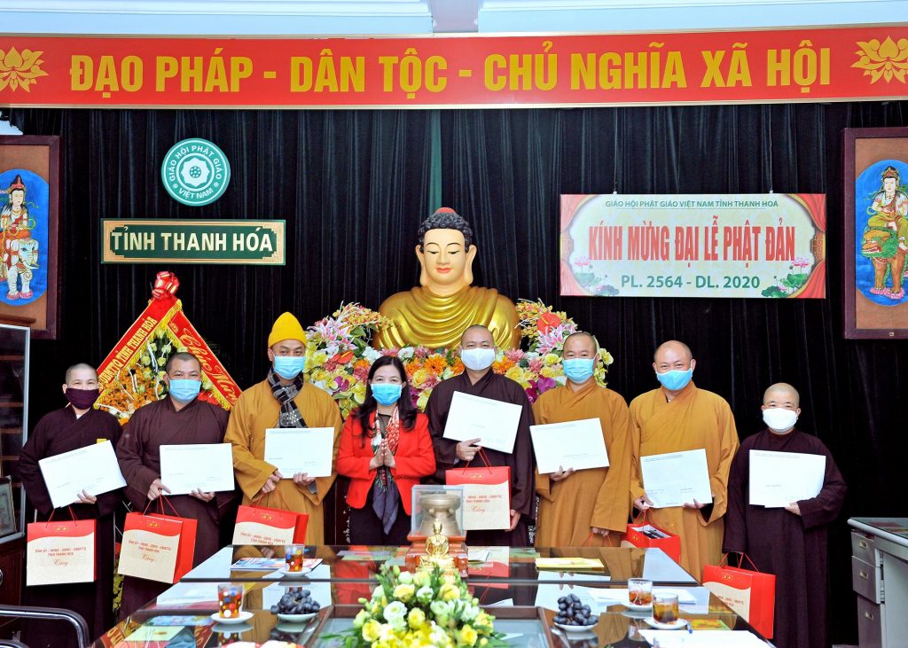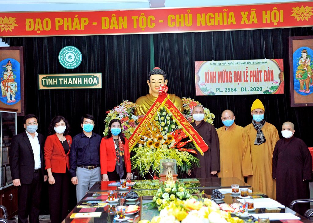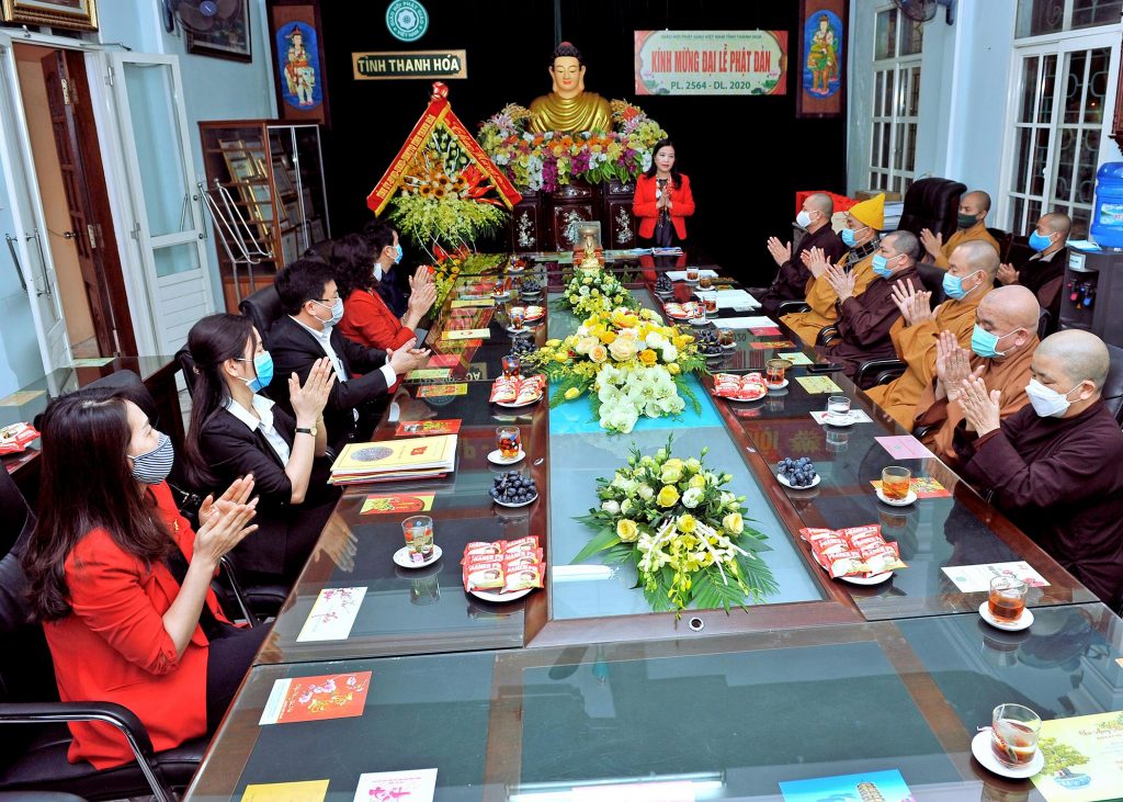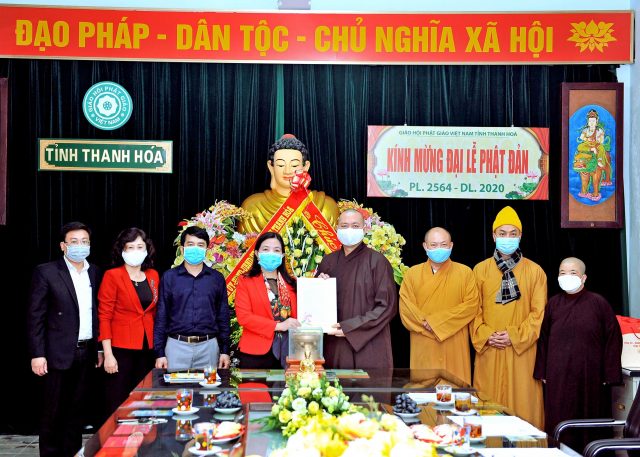 Nhân dịp Đại lễ Phật đản Phật lịch 2564  –  Dương lịch 2020 , sáng ngày 24/4/2020 nhằm ngày 02/04/Canh Tý, đoàn lãnh đạo Tỉnh ủy, HĐND, UBND, Ủy ban MTTQ Việt Nam tỉnh do Bà Phạm Thị Thanh Thủy – Ủy viên Ban thường vụ Tỉnh ủy, Trưởng Ban Dân vận Tỉnh ủy, Chủ tịch Ủy ban Mặt trận Tổ quốc tỉnh Thanh Hóa làm trưởng đoàn đã đến thăm và chúc mừng Ban Trị sự Giáo hội Phật giáo tỉnh.