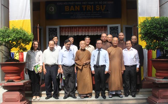 Tiếp đoàn có HT.Thích Tịnh Hạnh Phó BTS GHPG VN TP. HCM, Trưởng  ban  Kinh tế tài chính GHPG TP.HCM; HT.Thích Huệ Văn Phó BTS GHPG VN TP.HCM; TT.Thích Nhật Thiện Trưởng BTS GHPG VN TP.HCM cùng chư tôn đức lãnh đạo GHPG VN Quận 10.