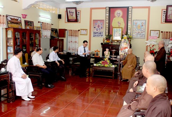 Tại nơi đến thăm, ông Nguyễn Đức Trọng, Phó Bí thư quận ủy, Chủ tịch UBND Quận gửi đến quý chư tôn Hòa thượng, Thượng tọa, Đại đức, Tăng, Ni và đồng bào Phật tử lời chúc mạnh khỏe, thân tâm thường an lạc; đánh giá cao vai trò và những đóng góp thiết thực của các vị chức sắc Phật giáo thành  phố nói chung và quận 10 vận động đồng bào Phật tử trong việc tăng cường khối đại đoàn kết dân tộc, hưởng ứng phong trào thi đua yêu nước, các cuộc vận động do MTTQVN phát động.