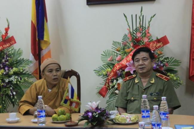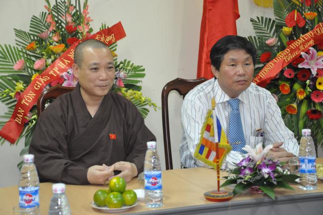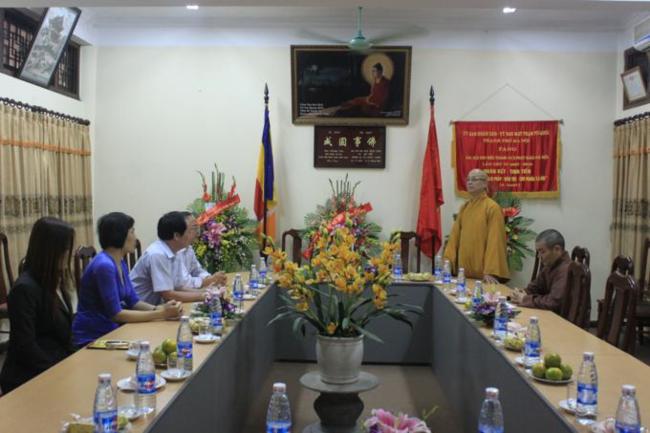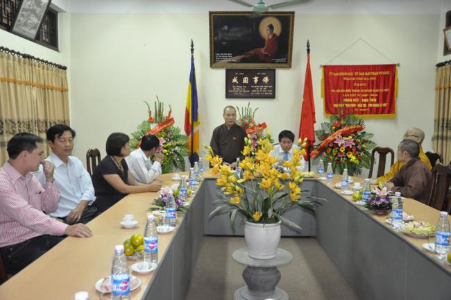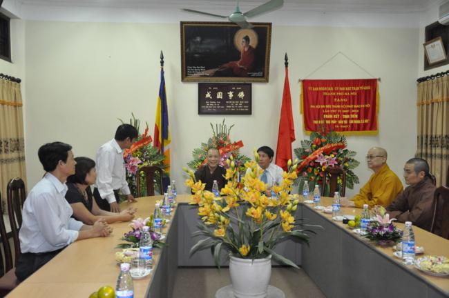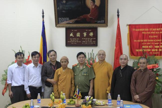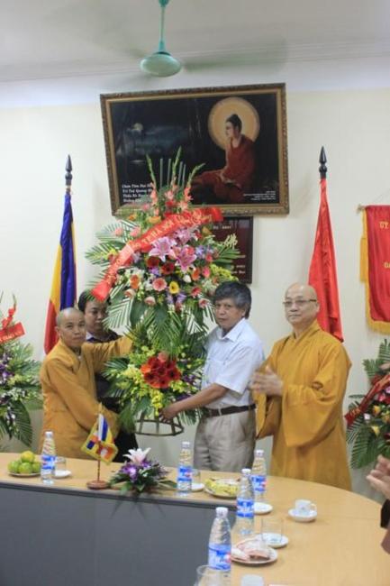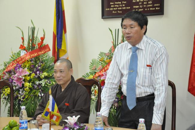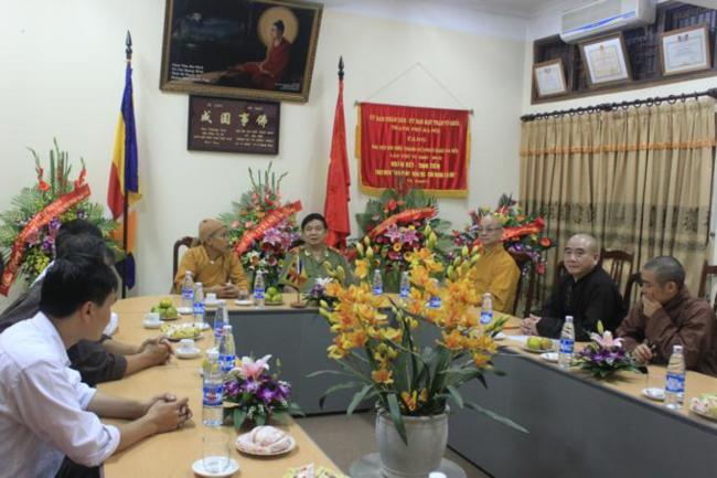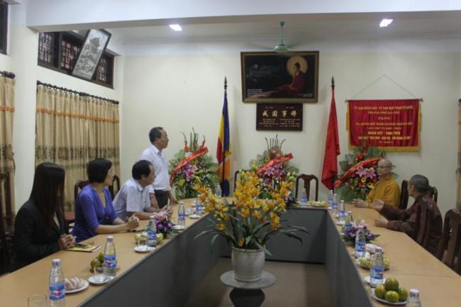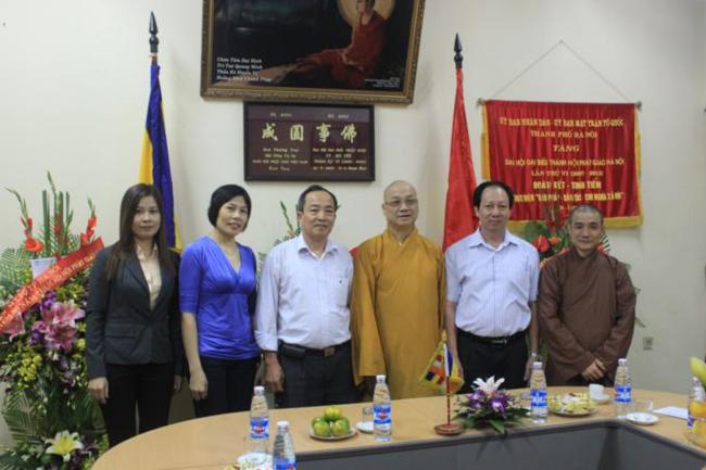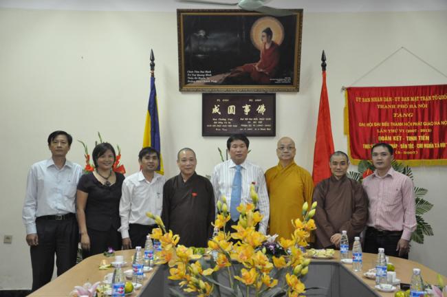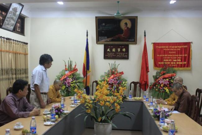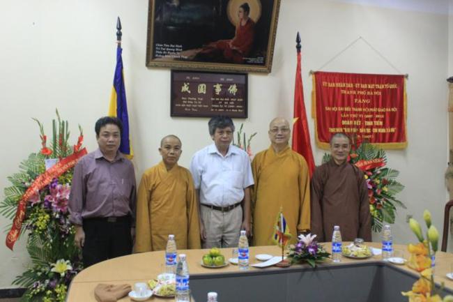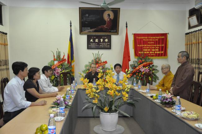 Tiếp đoàn có TT. Thích Bảo Nghiêm – Phó Chủ tịch HĐTS GHPGVN, Trưởng ban Trị sự THPG Hà Nội cùng chư Tôn đức trong Thường trực Ban Trị sự.