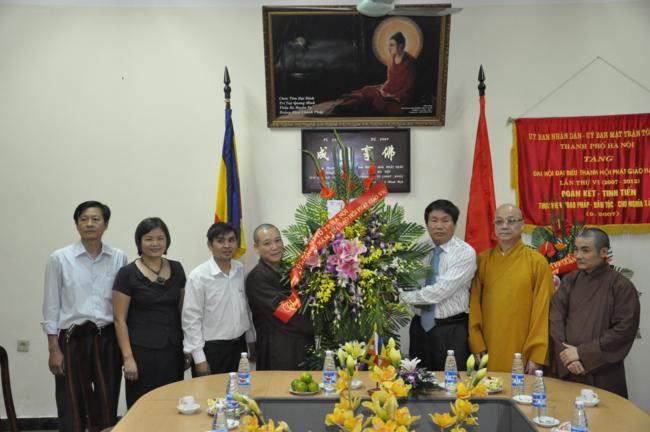 Các đoàn đến chúc mừng bao gồm Đoàn Mặt trận Tổ quốc TP. Hà Nội do ông Đào Văn Bình – Chủ tịch dẫn đầu, đoàn UBND quận Hoàn Kiếm, đoàn Công an TP. Hà Nội, đoàn Ban Tôn giáo thuộc Sở Nội vụ Thành phố.