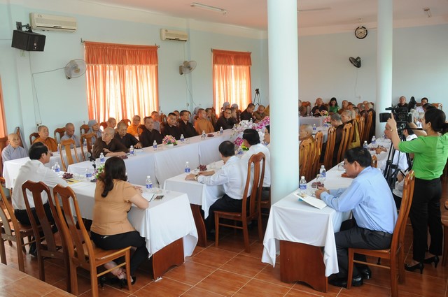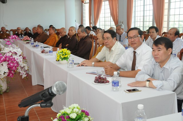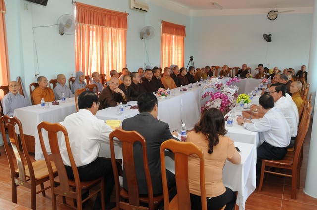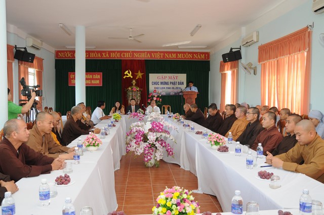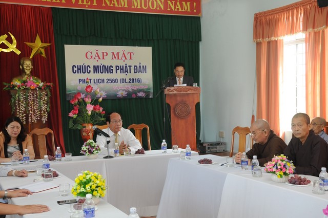 Mở đầu buổi gặp mặt, ông Võ Xuân Ca phát biểu, gởi thư chúc mừng nhân dịp Đại lễ Phật đản và mùa an cư kiết hạ PL.2560 – DL.2016 đến chư tôn đức Giáo phẩm Tăng Ni và đồng bào phật tử trong tỉnh với lời chúc mừng tốt đẹp, an lạc.