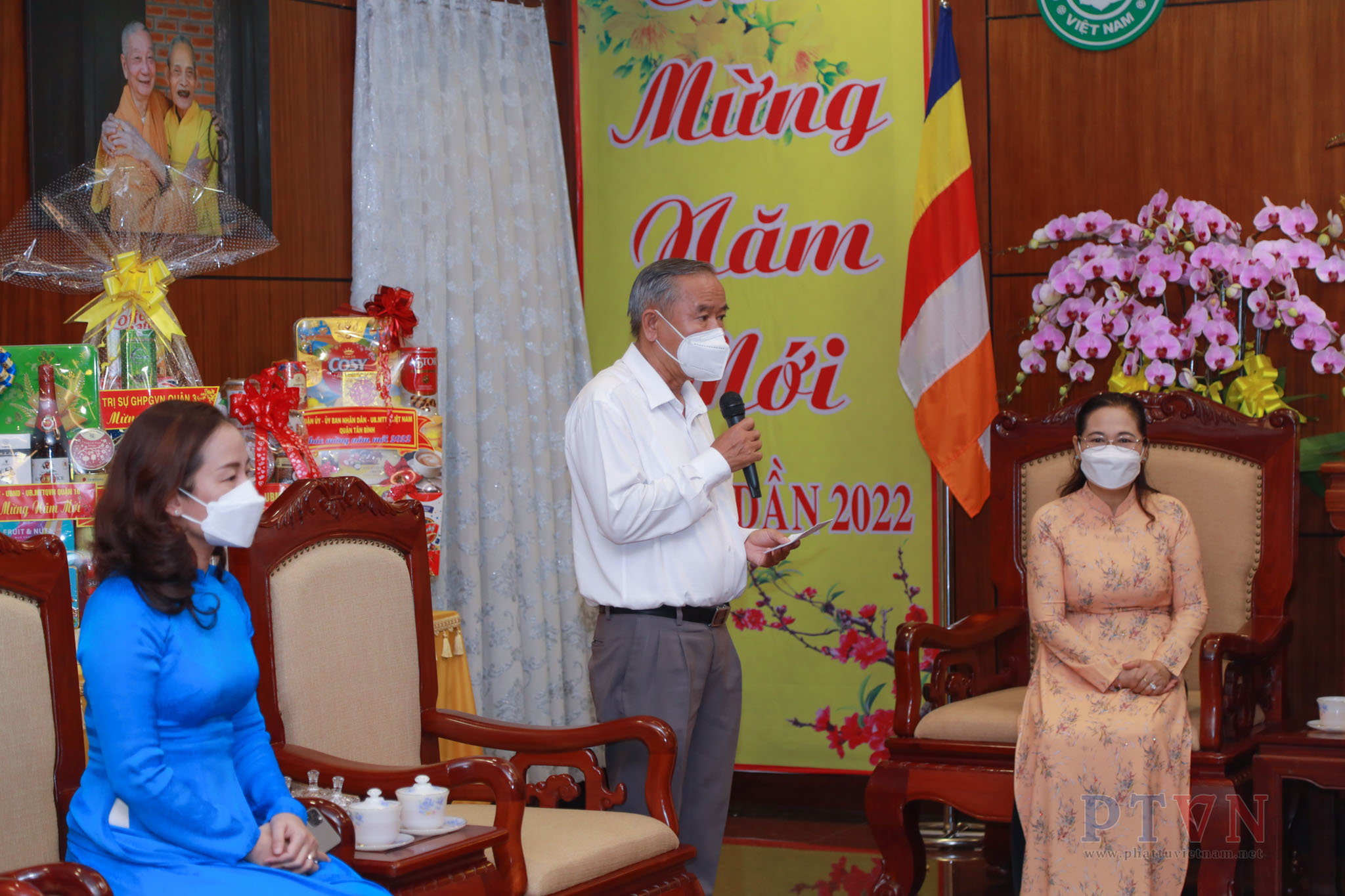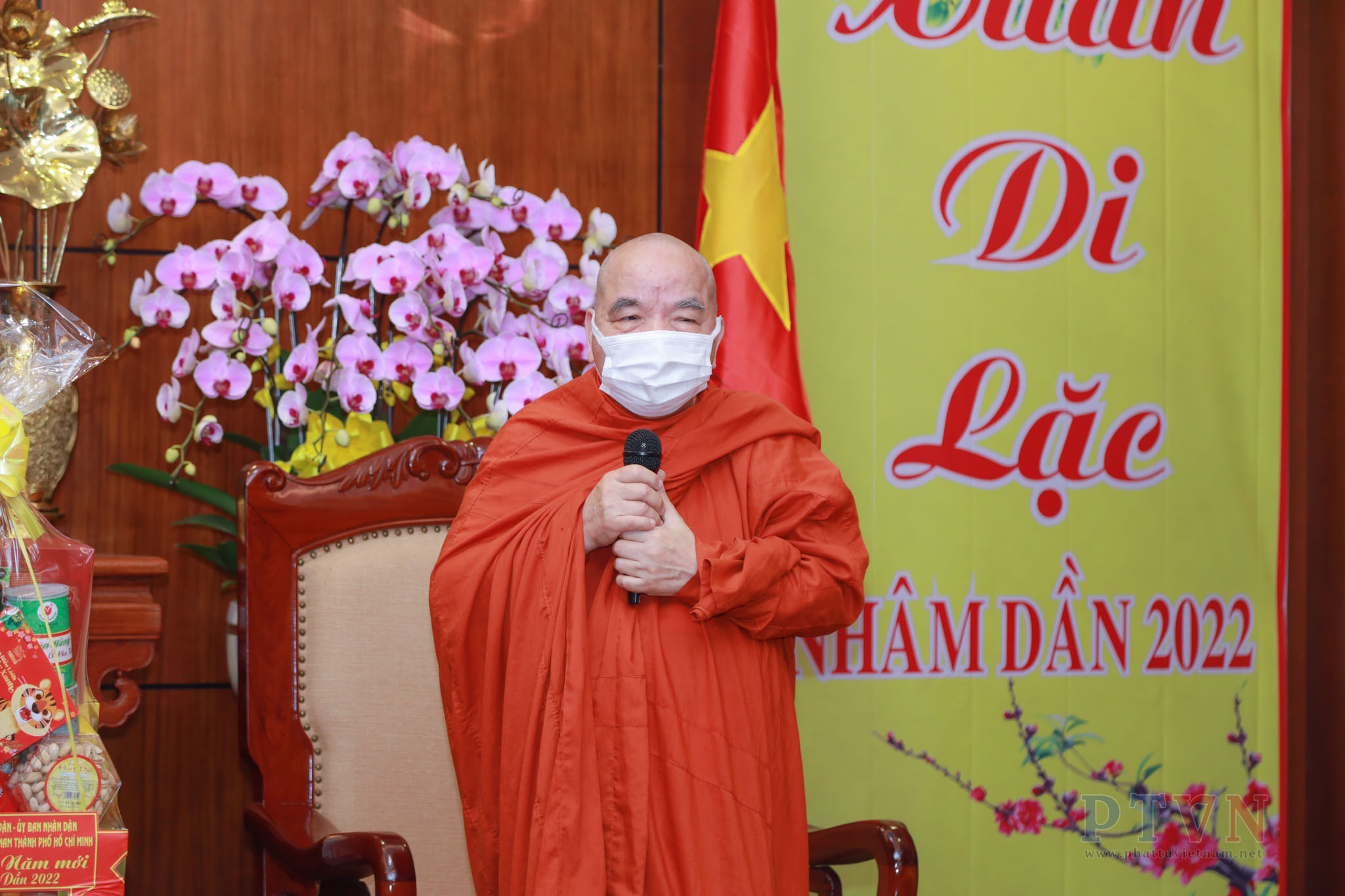 Đáp từ, HT. Thích Thiện Tâm có lời cảm ơn chân thành đến lãnh đạo Thành ủy đã dành thời gian đến thăm, chúc Tết cổ truyền của dân tộc đến Ban Trị sự.