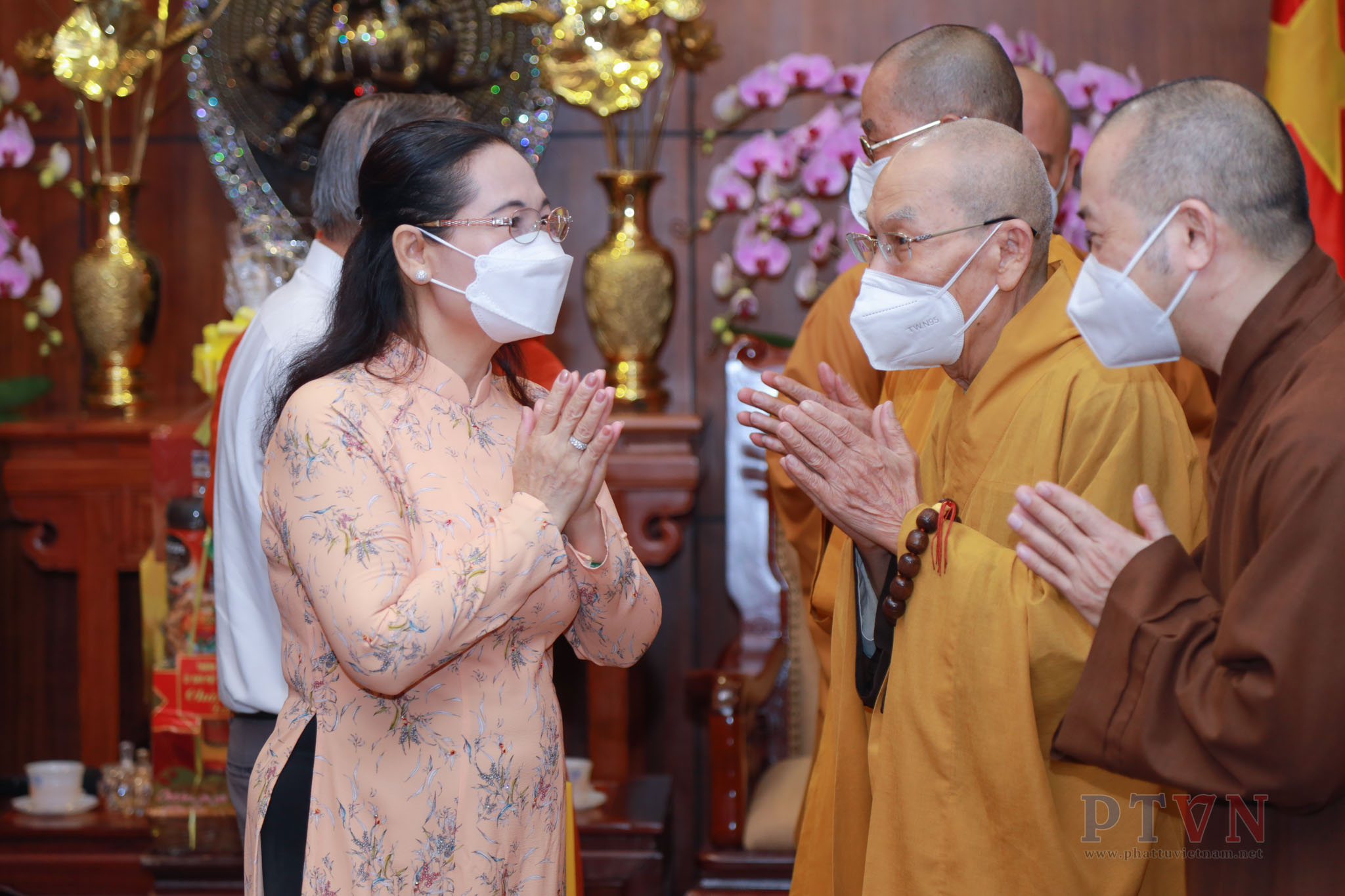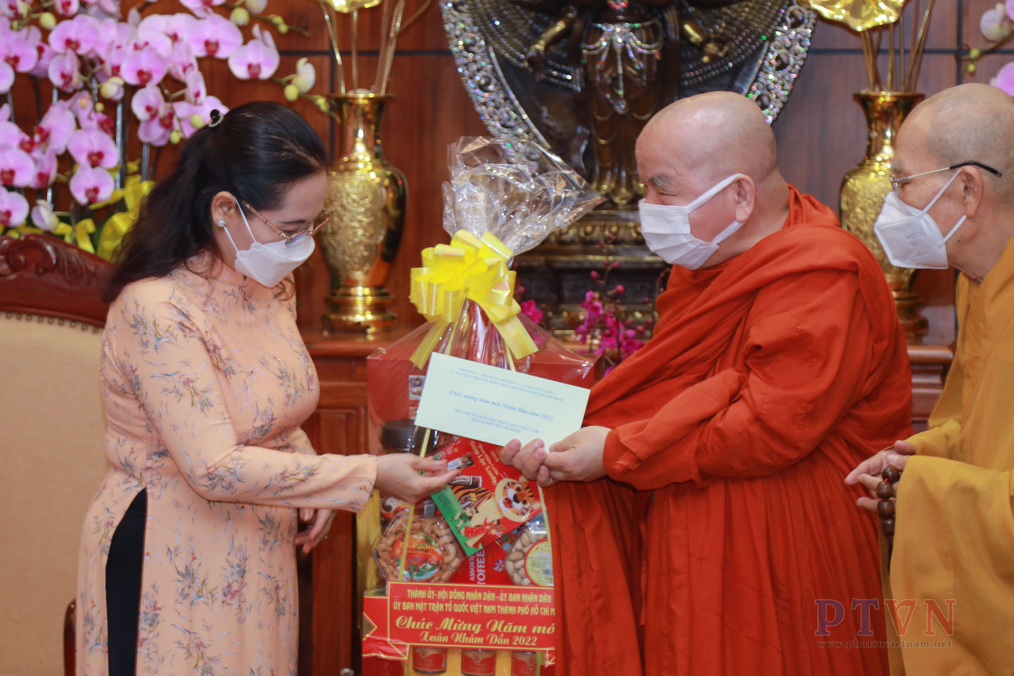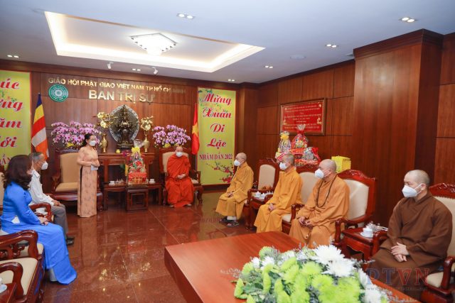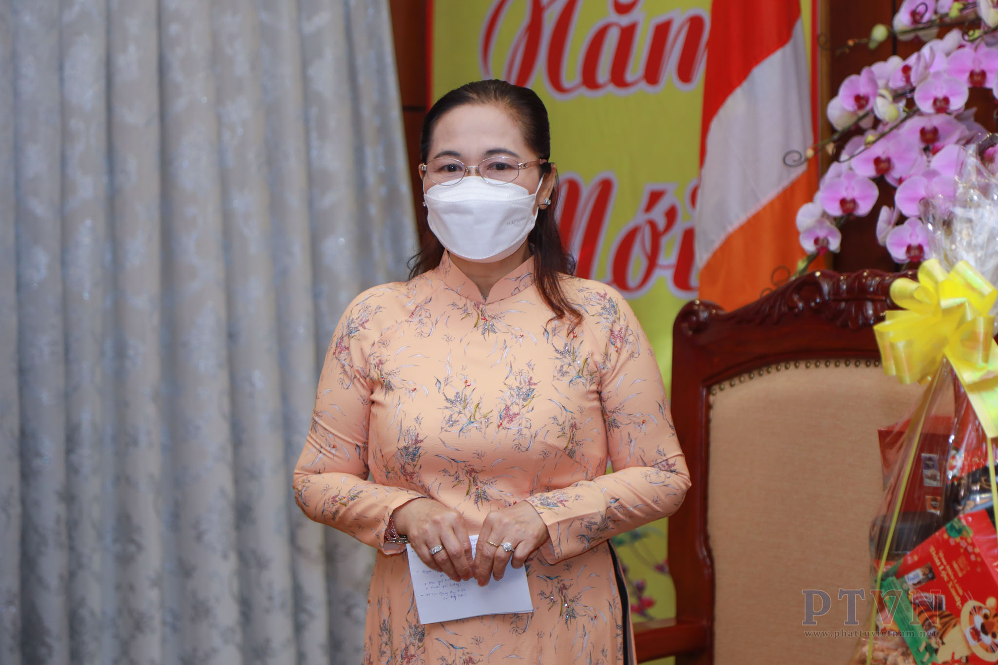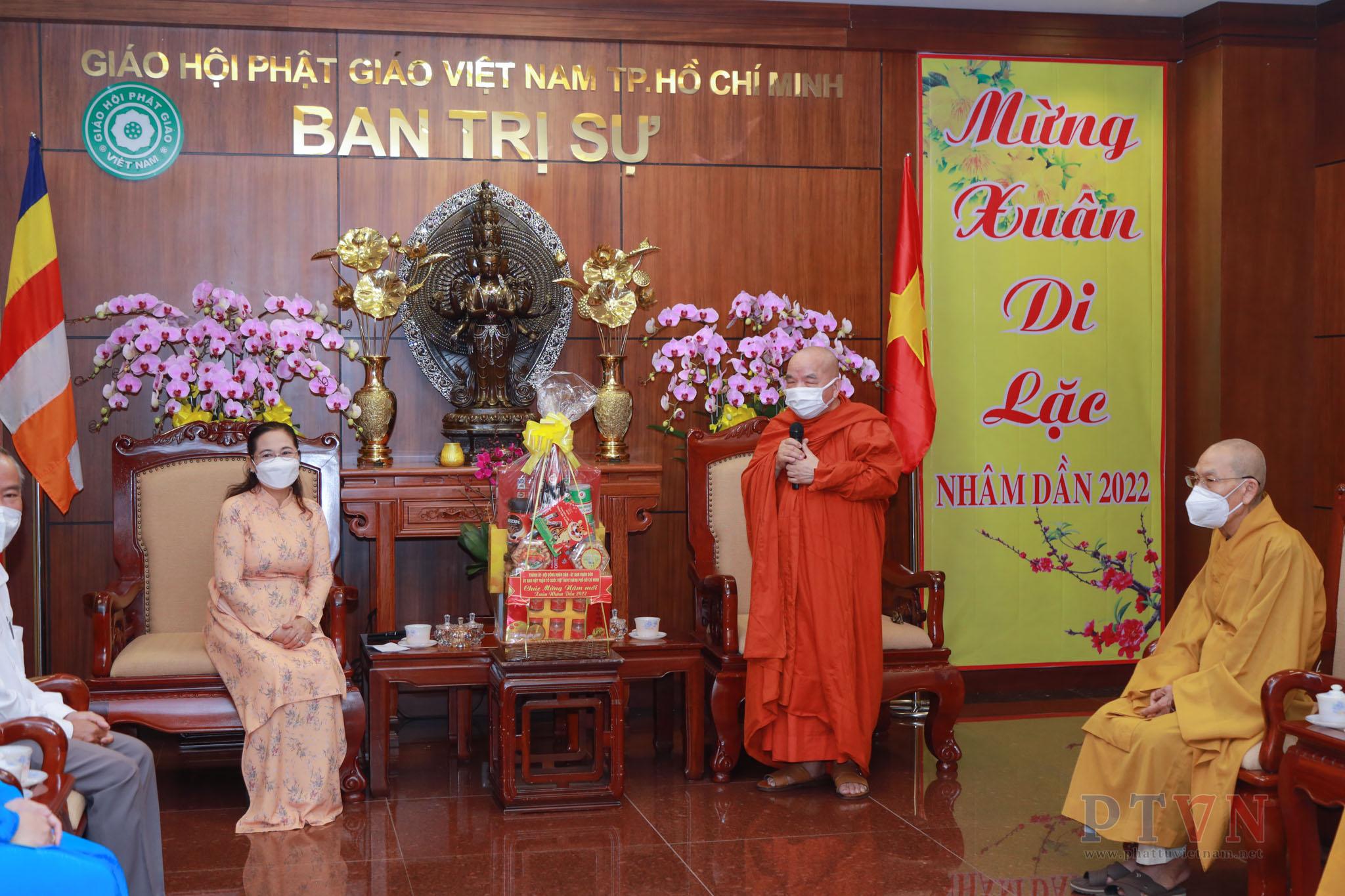 Tại buổi thăm, bà Phó Bí thư Thành uỷ đã gửi lời vấn an và chúc đến Trưởng lão Hoà thương Thích Trí Quảng – Quyền Pháp chủ GHPGVN, Trưởng BTS GHPGVN TP thân tâm thường an lạc, sức khoẻ dồi dào và trí tuệ luôn sáng suốt để tiếp tục lãnh đạo Giáo hội Phật giáo Việt Nam, hướng dẫn Tăng Ni Phật tử cả nước sống tốt đời đẹp đạo, để cùng chính quyền thành phố xây dựng đất nước giàu mạnh. Dịp này, nhân Tết cổ truyền dân tộc đang đến gần, đại diện các ban ngành thành phố cũng có lời vấn an sức khoẻ và chúc tết đến chư tôn đức lãnh đạo Phật giáo thành phố.
