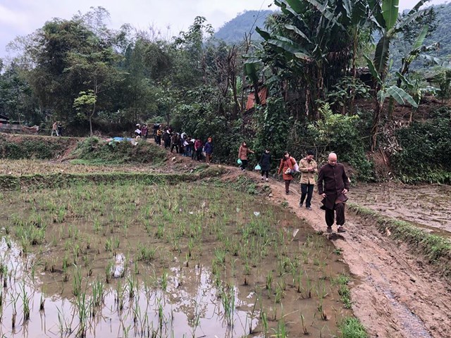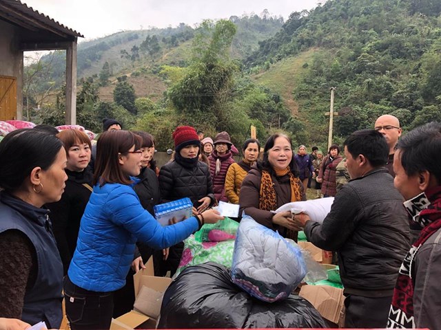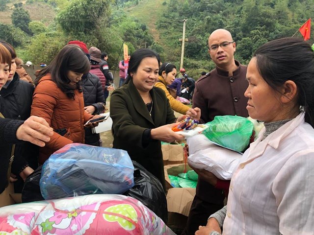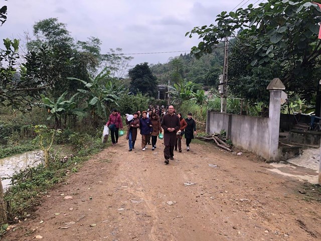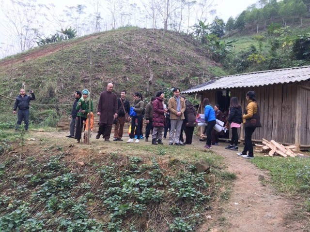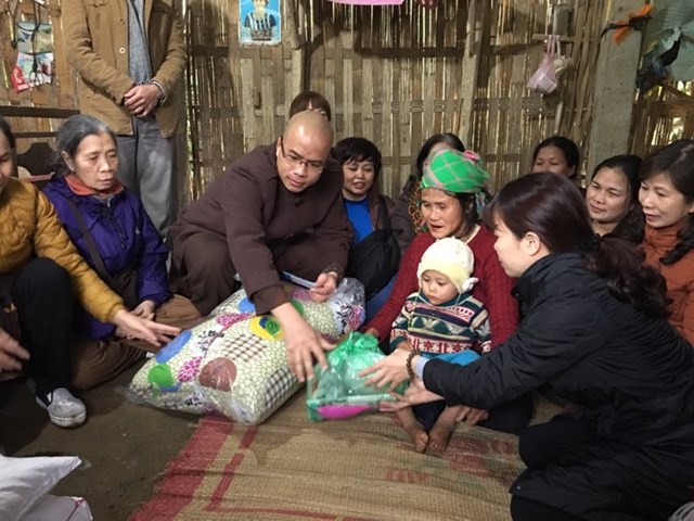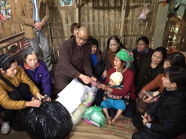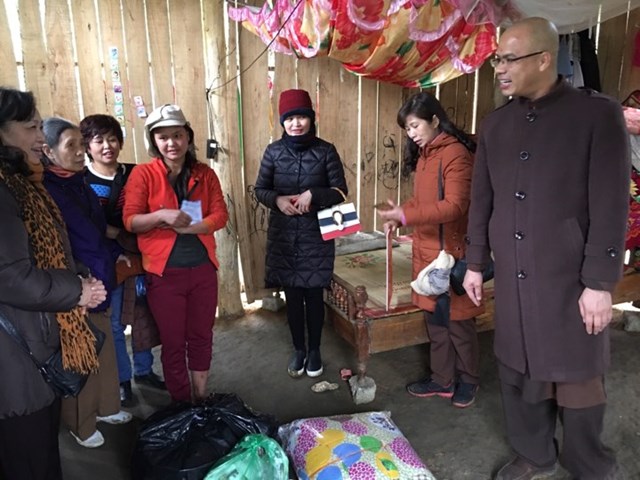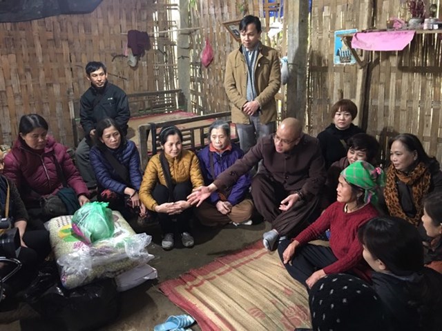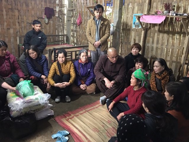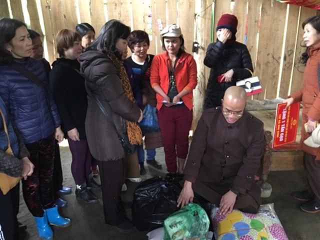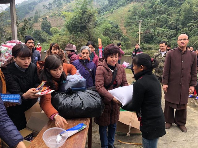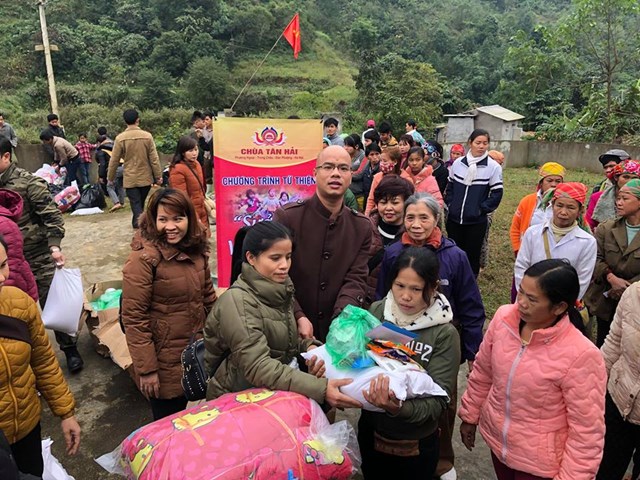 Tại đây, đoàn đã trao hơn 100 phần quà cho hơn 100 hộ dân với tổng giá trị hơn 60 triệu đồng, mỗi phần quà trị giá hơn 600 ngàn đồng bao gồm: 10kg gạo tám Điện Biên, 1kg mỳ chính, bột canh, chăn, màn, 2 bộ quần áo rét người lớn, 2 bộ quần áo rét cho trẻ em và 1 phong bì tiền mặt trị giá 200 ngàn đồng. Đại đức Thích Quảng Hiếu – Bản tự chùa Tân Hải, trưởng Ban tổ chức chương trình từ thiện đã động viên, thăm hỏi bà con vùng núi sớm vượt qua khó khăn, ổn định cuộc sống, sớm thoát khỏi cảnh đói nghèo. Những món quà này tuy nhỏ nhưng thể hiện tinh thần từ bi, cứu khổ, ban vui của người con Phật, luôn mang tình yêu thương đó trang trải khắp muôn nơi trên tinh thần “ Phật giáo luôn đồng hành cùng dân tộc” và đạo lý: “ Uống nước nhớ nguồn” từ ngàn đời nay của Dân tộc Việt Nam.