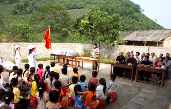 Buổi lễ diễn ra trọng thể, ấm áp và chan hòa tình thân trong không gian yên ắng của núi rừng Tây bắc Lào Cai, Thầy Chân Tấn đã chuyển thông điệp, động viên của Thượng Tọa Thích Thanh Điện Phó thường trực Ban hướng dẫn Phật tử TW đặc trách phía Bắc, trụ trì chùa Tân Bảo đến với các em học sinh trường tiểu học Bản Phiệt tinh thần Vu Lan – tri ân và báo ân. Thương Tọa mong mỏi trong năm học mới (2011 -2011), các em sẽ cố gắng học tập tốt vàđạt nhiều thành quả tốt.