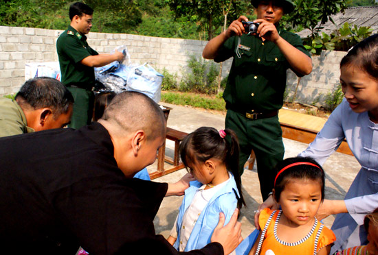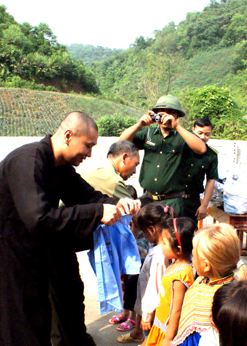 Được biết, trường tiểu học Bản Phiệt (phân hiệu Nậm Sò) được thành lập tại Huyện Bảo Thắng, xã Bản Phiệt, tỉnh Lào Cai. Bản Phiệt là một thôn mới thành lập gần biên giới (tỉnh Vân Nam –Trung Quốc), nên gặp rất nhiều khó khăn và thử thách. Những chiếc áo mới, những phần quàấm áp trong mùa Vu Lan này mà chư Tăng, Phật tử chùa Tân Bảo và Ban lãnh đạo Đồn biên phòng cửa khẩu Quốc tế Lào Cai trao tặng đến các em làđộng lực, là những tia hy vọng, tiếp sức, nâng bước chân các em tiếp tục học tập, tiến xa hơn nữa trong dòng đời xuôi ngược, bao la.