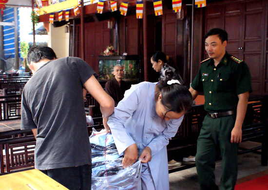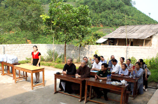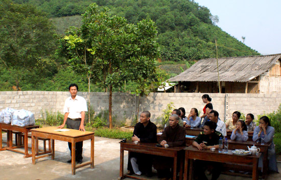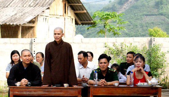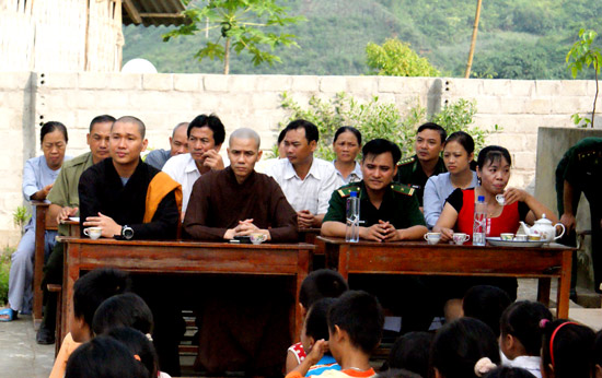 Đến tham gia chương trình có thầy Thích Minh Thuận (thường trực BBT trang tin PTVN), thầy Thích Chân Tấn – đại diện chư Tăng Chùa Tăng Bảo, Ông Nguyễn Văn Thiệu – Phó Đồn trưởng đồn Biên Phòng cửa khẩu Quốc tế Lào Cai, Ông Tạ Văn Tuân – Tổ trưởng tổ công tác biên Phòng Bản Phiệt, Ông Trần Hồng Quý phó chủ tịch UBND, Lý Thị Dín Chủ Tịch Hội Phụ nữ …và các thầy cô giáo, các em học sinh trường tiểu học Bản Phiệt (phân hiệu Nậm Sò) – Huyện Bảo Thắng, xã Bản Phiệt, tỉnh Lào Cai.