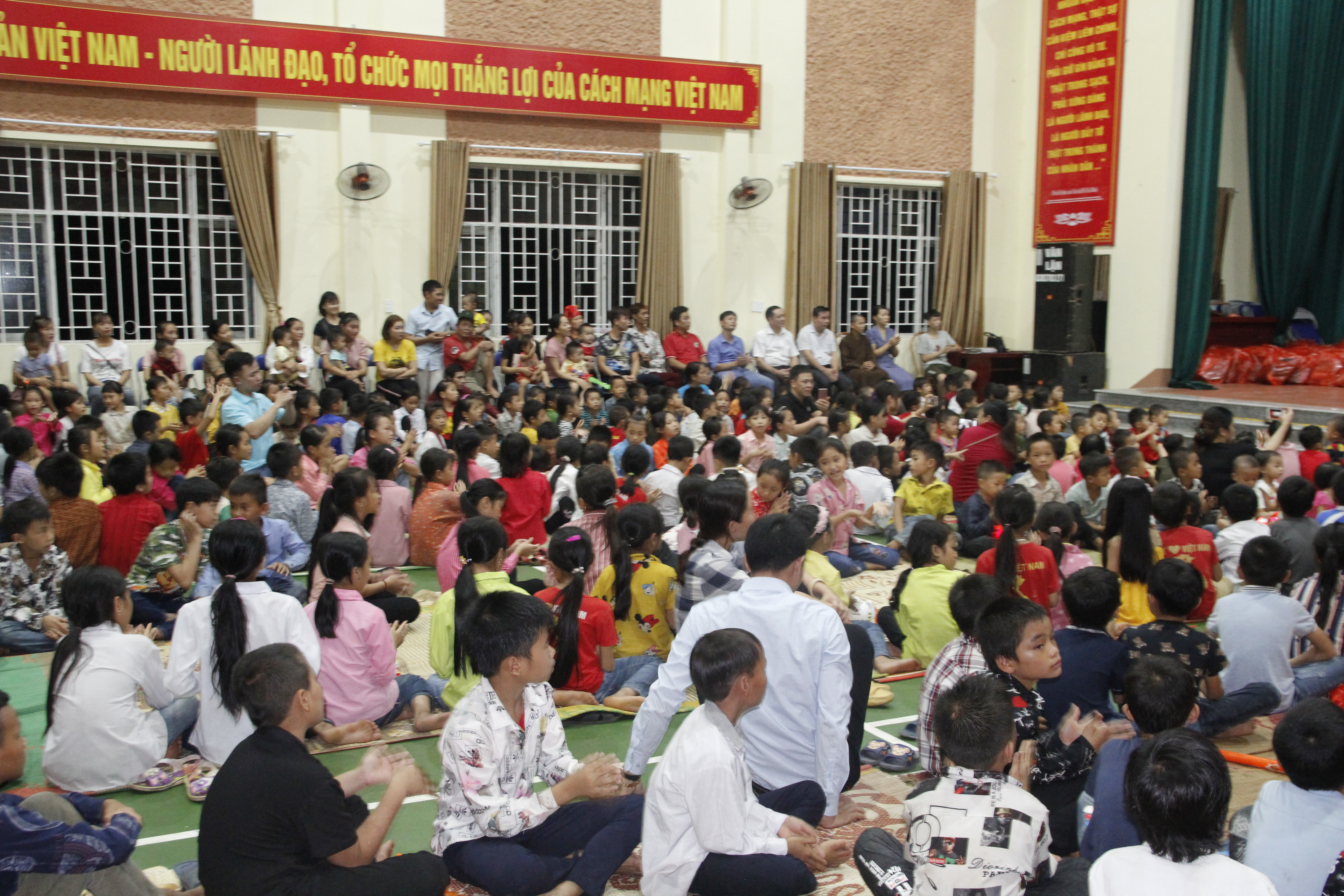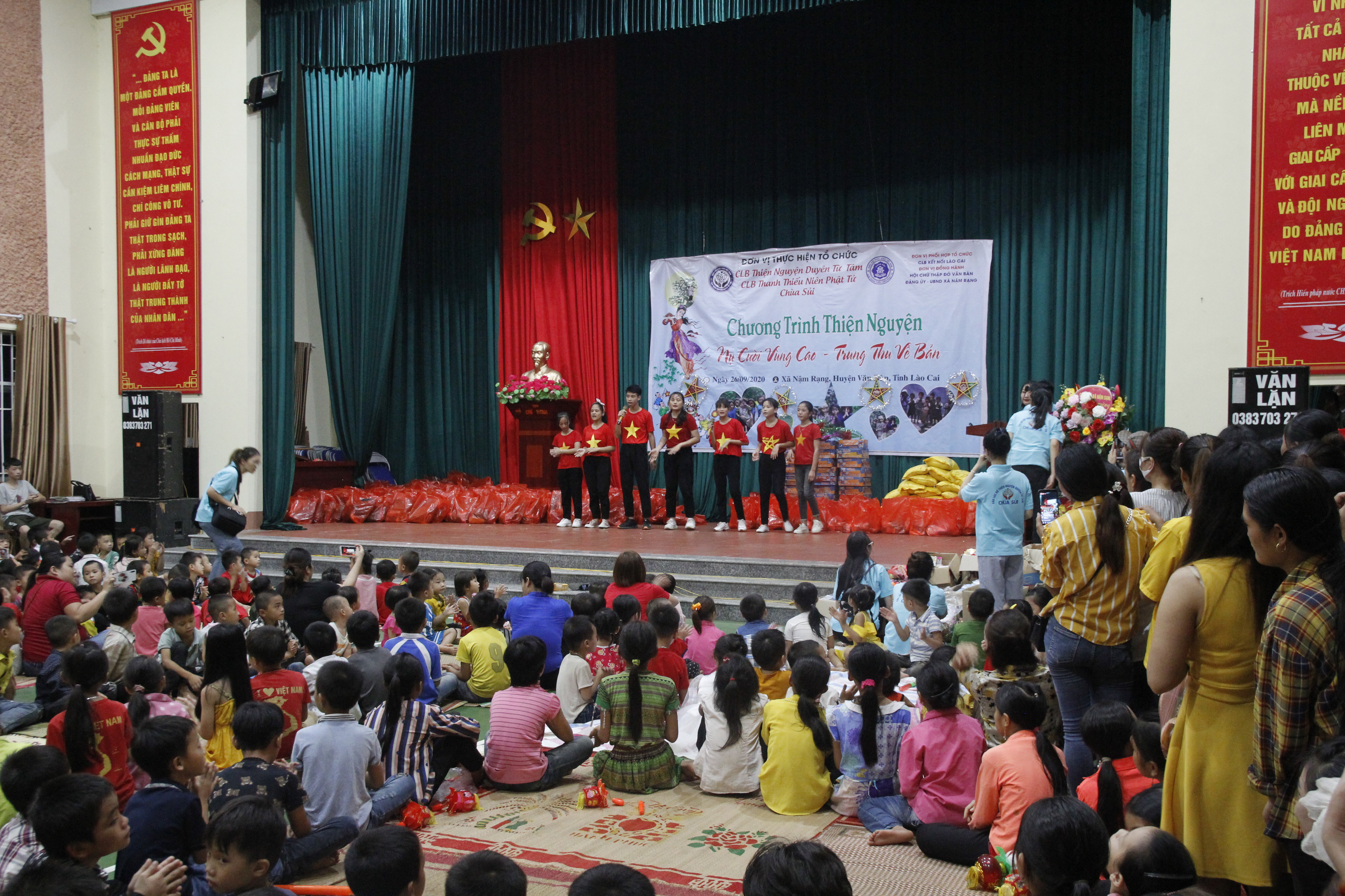 Buổi tối là chương trình chính thức, hơn 300 em học sinh mẫu giáo và tiểu học cùng đông đảo bà con nhân dân đã có mặt tại nhà văn hóa xã Nậm Rạng . Tới tham dự buổi lễ còn có đại diện của Hội Chữ Thập Đỏ huyện Văn Bàn, Đảng Ủy – UBND xã Nậm Rạng, Hiệu Trưởng các trường Mầm Non và THCS Bán Trú xã Nậm Rạng và đại diện Ban Tổ Chức CLB Thiện Nguyện Duyên Từ Tâm Chùa Sủi .