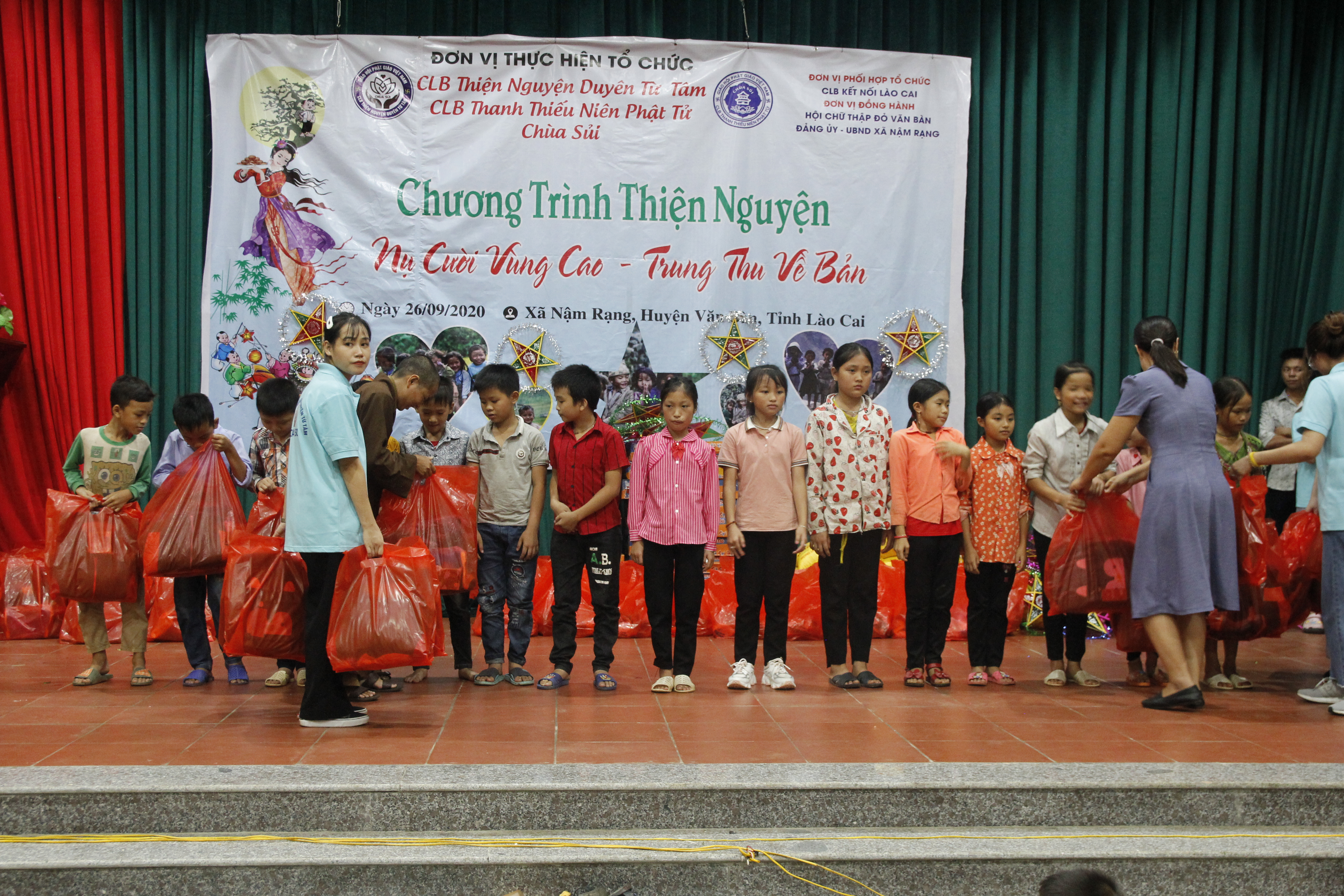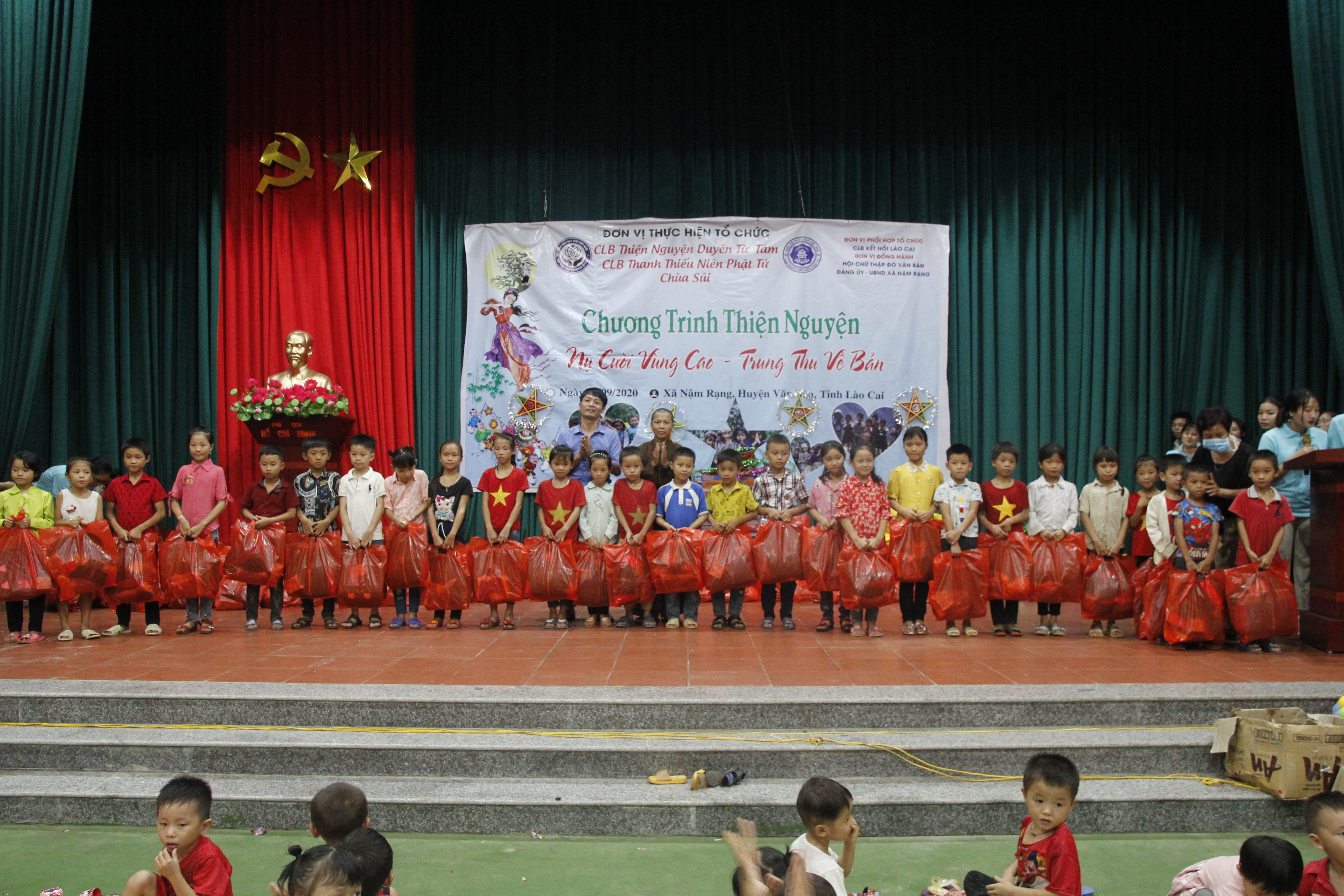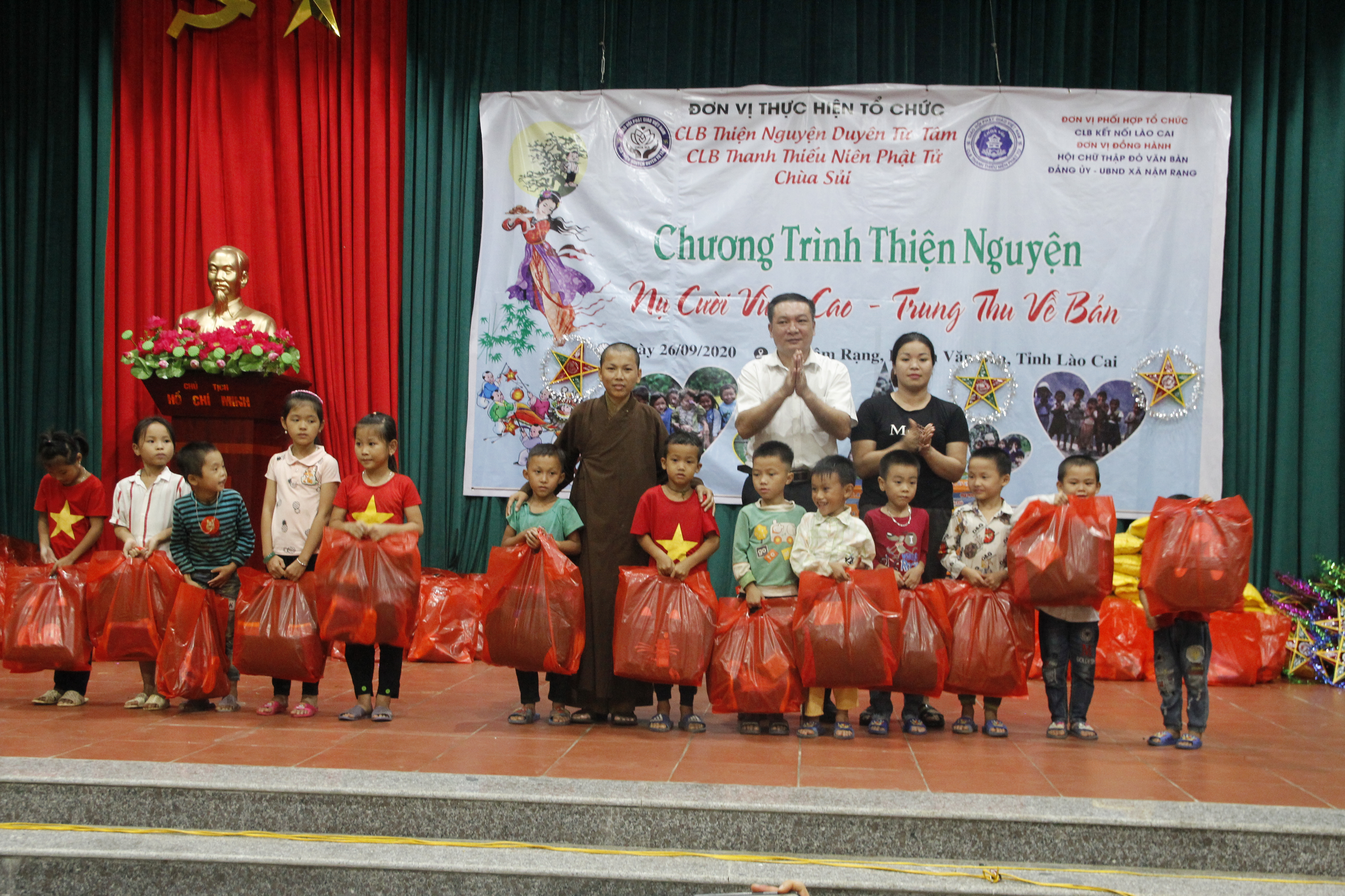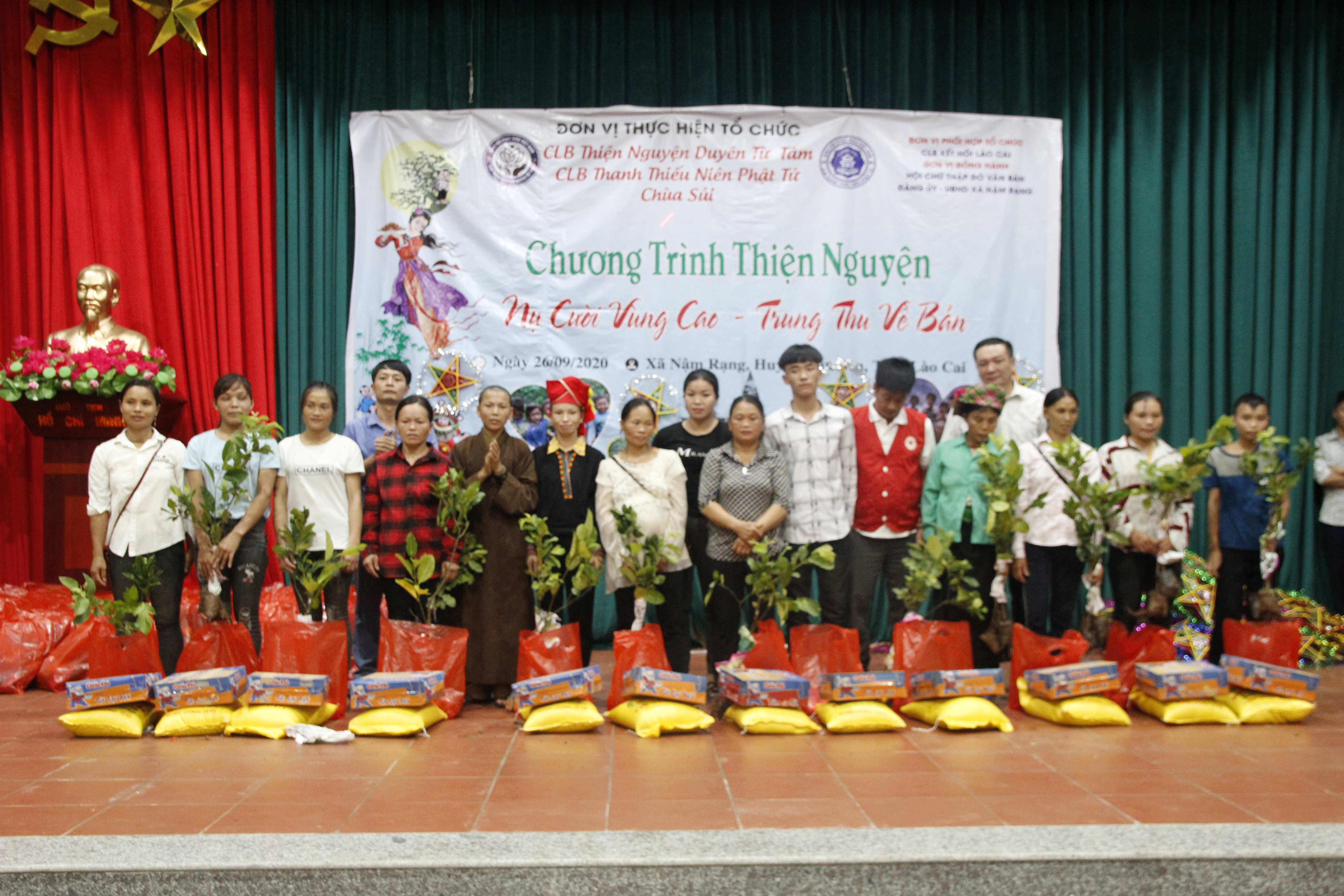 Vừa qua ngày 25 và 26 tháng  (tức ngày 10-11/8/ Canh Tý ), các bạn trẻ trong CLB Thiện Nguyện Duyên Từ Tâm kết hợp cùng CLB Thanh Thiếu Niên Phật Tử Chùa Sủi – Gia Lâm, Hà Nội đã có chuyến đi thiện nguyện tại xã Nậm Rạng, huyện Văn Bàn, tỉnh Lào Cai với chủ đề : “ Nụ Cười Vùng Cao – Trung Thu Về Bản ” . Chuyến đi ý nghĩa này có sự tham gia của 40 bạn Thanh Thiếu Niên Phật Tử và trao tặng cho 200 xuất quà cho trẻ em nghèo và 30 hộ gia đình đặc biệt khó khăn .