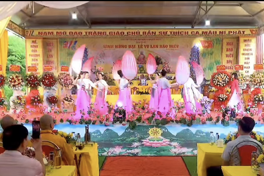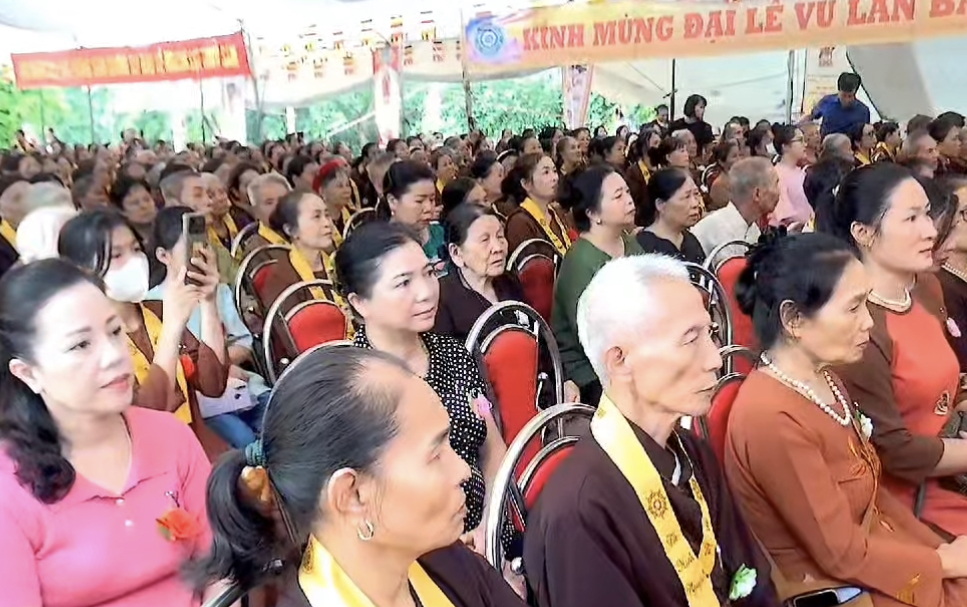 Tại Đại lễ Vu lan báo hiếu, chư tăng ni, phật tử đã cầu nguyện và thực hiện nghi thức cài hoa hồng để tưởng nhớ những người cha, mẹ đã tạ thế. Đồng thời, tôn vinh những người mẹ, cha còn lại trên thế gian bằng tấm lòng hiếu kính của người con Phật