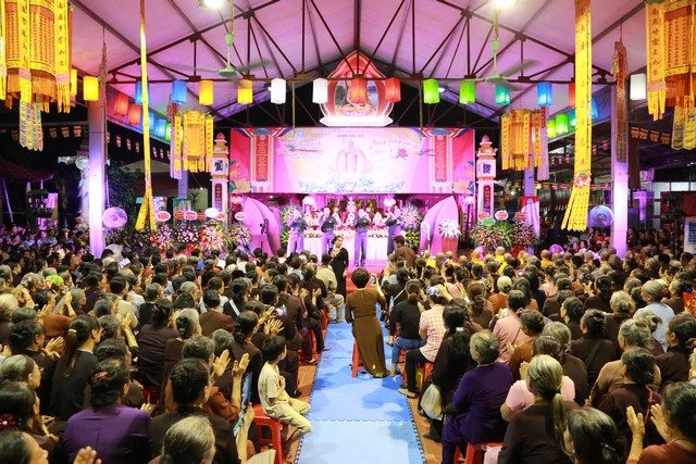 Sau nghi lễ bông hồng cài áo, lễ dâng Pháp y chư tăng, Chư tôn đức và các phật tử đã thực hiện nghi thức truyền hoa đăng cầu nguyện cho quốc thái, dân an, trong không khí linh thiêng tràn đầy hỷ  lạc .