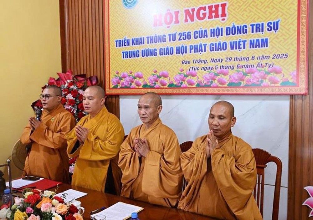 Chiều ngày 29/6 (nhằm ngày 5/6 năm Ất Tỵ), tại Văn phòng Ban Trị sự huyện Bảo Thắng, Ban Trị sự Giáo hội Phật giáo Việt Nam (GHPGVN) tỉnh Lào Cai đã trang nghiêm tổ chức Hội nghị Triển khai Thông tư 256 của Hội đồng Trị sự GHPGVN.