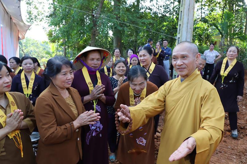 Ông gửi lời cảm ơn tới chư Tôn đức cùng toàn thể Tăng ni Phật tử, các quý vị đại biểu đã đồng hành cùng chính quyền địa phương trong công cuộc xây dựng nông thôn mới, an sinh xã hội, Trong việc mở rộng tuyến đường liên thông tại thôn Hùng Xuân 1 và Thôn Phẻo.