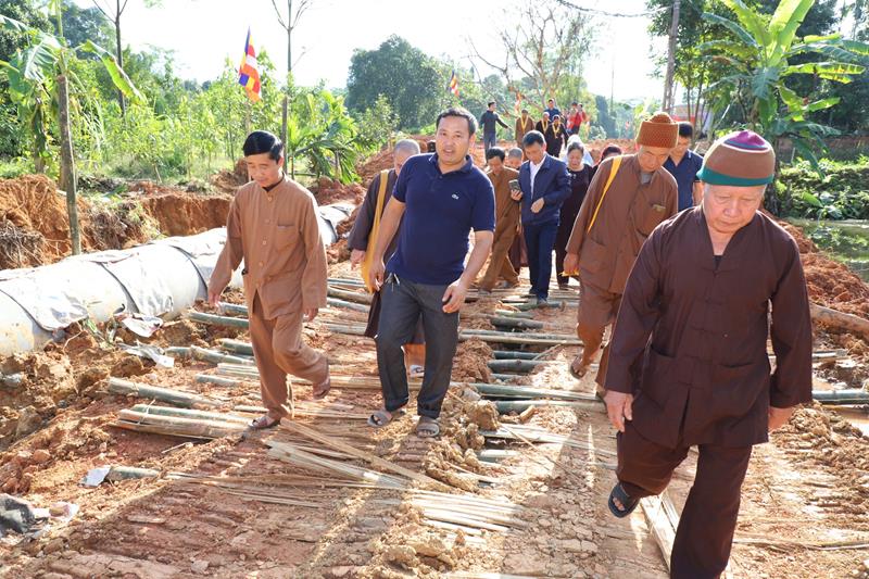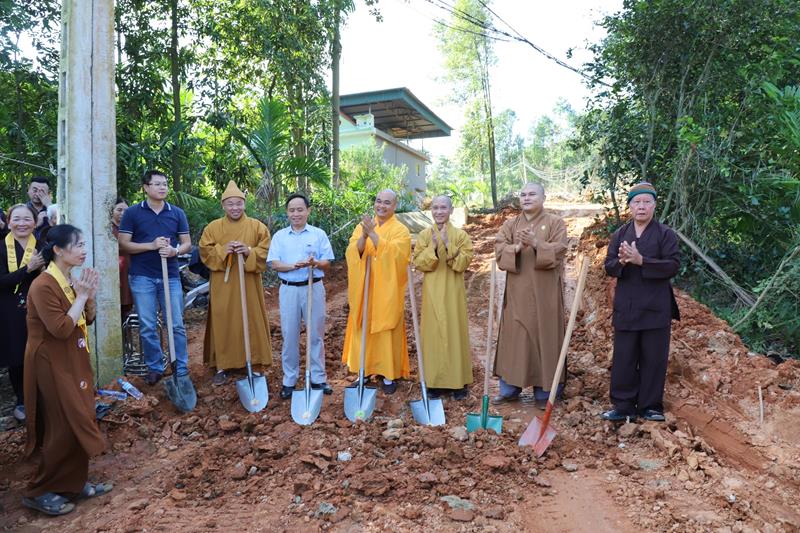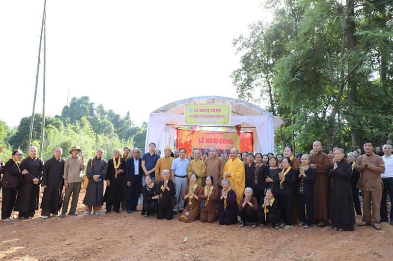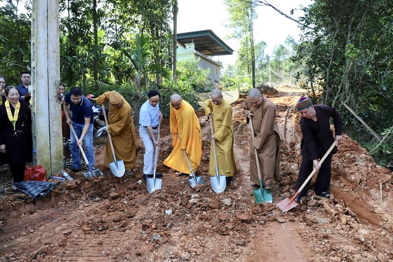 Cuối buổi lễ Chư Tôn đức cùng quý vị đại biểu thực hiện nghi thức Lễ khởi công tuyến đường đoàn kết đã thập phần viên mãn.