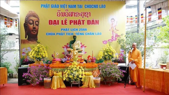 Trong không khí trang nghiêm, các chư tôn giáo phẩm Việt Nam, Lào cùng bà con Phật tử và người Việt tại thủ đô Viêng Chăn cùng tưởng nhớ công ơn của Đức Phật Thích Ca Mâu Ni; thực hiện nghi lễ dâng hương, Tắc Bạt (hay nghi thức cúng dường), cử hành lễ Mộc dục (tắm Phật) theo truyền thống ngày Phật Đản và cầu hòa bình, an lạc, hạnh phúc cho toàn dân tộc nói chung và cho bà con kiều bào tại Lào nói riêng.