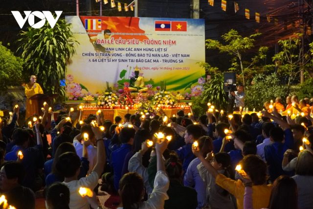Tối 14/3, tại chùa Phật Tích Thủ đô Vientiane, Lào, diễn ra đại lễ cầu siêu, tưởng niệm anh linh các anh hùng liệt sĩ, chiến sĩ trận vong, đồng bào tử nạn Lào – Việt Nam và 64 liệt sĩ hy sinh tại đảo Gạc Ma – Trường Sa.