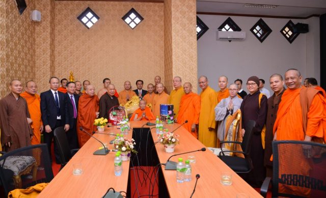 Trong khuôn khổ đoàn Trung ương GHPGVN tham dự chuỗi sự kiện hội thảo và tưởng niệm tại Lào, chư Tôn đức Ban Thường trực HĐTS, Văn phòng Trung ương Giáo hội, Ban Tôn giáo Chính phủ, đại diện cục An ninh Nội địa Bộ công an đã có buổi thăm thân mật Liên minh Trung ương Phật giáo Lào tại chùa Thạt Luông (thủ đô Viêng Chăn).