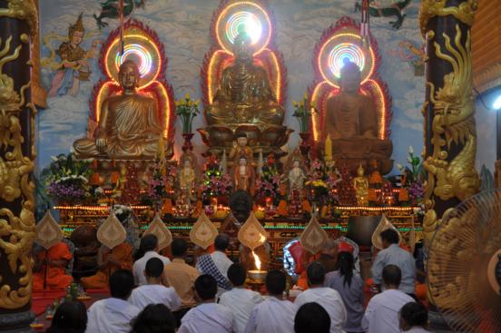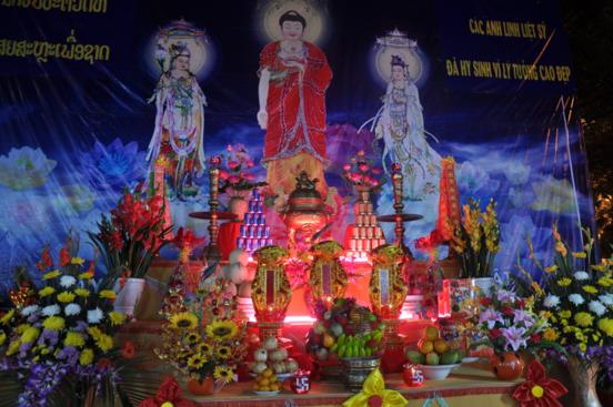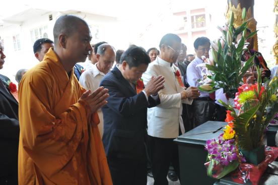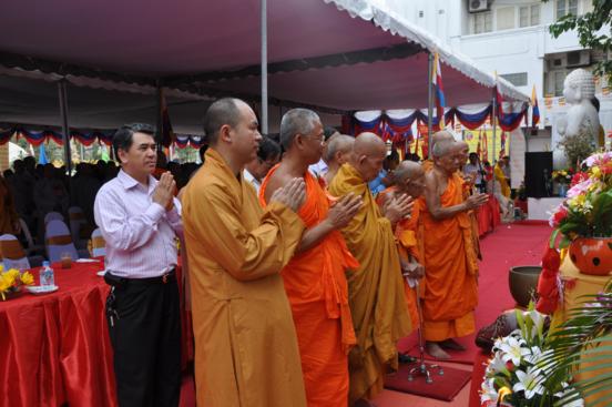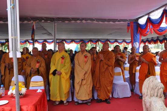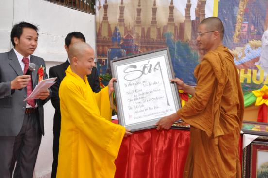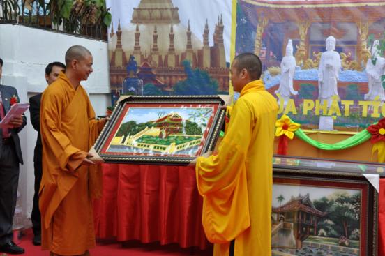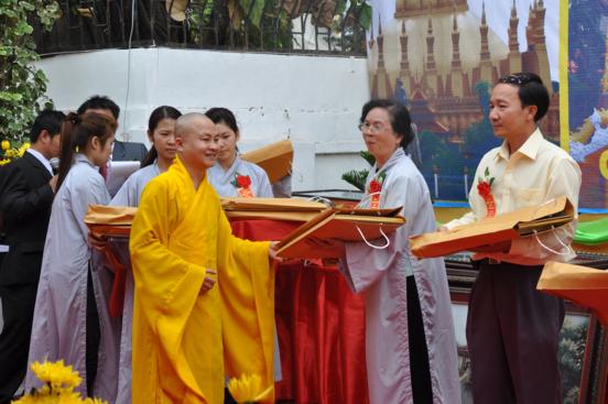 Tham dự và chứng minh buổi lễ có chư Tôn đức Hoà thượng, thượng toạ, Tăng Ni Thủ đô Viêng Chăn.