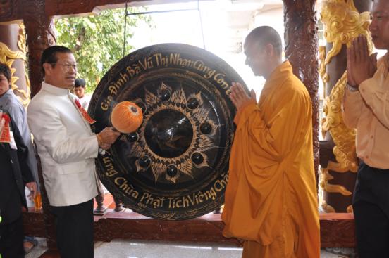Tại buổi lễ ĐĐ Thích Minh Quang – Trụ trì chùa Phật Tích báo cáo quá trình xây dựng chùa.