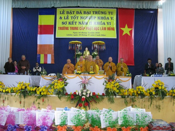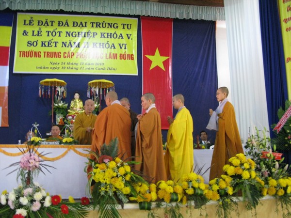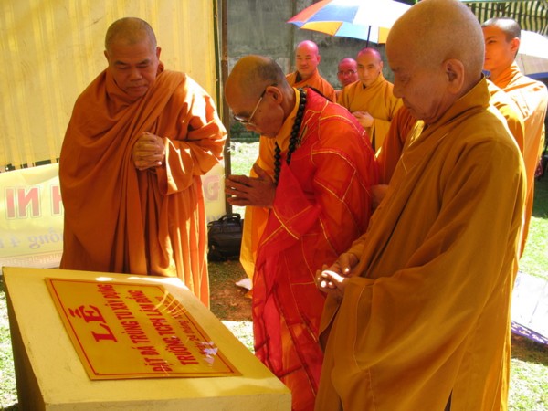 Chính vì thế, nhân dịp này Ban Giám Hiệu Nhà Trường cũng đã long trọng tổ chức lễ đặt đá trùng tu xây dựng cơ sở mới với kinh phí ước tính khoảng trên 3 tỷ đồng bao gồm khu vực văn phòng, dãy phòng học , khu nội trú cho tăng ni sinh v.v…