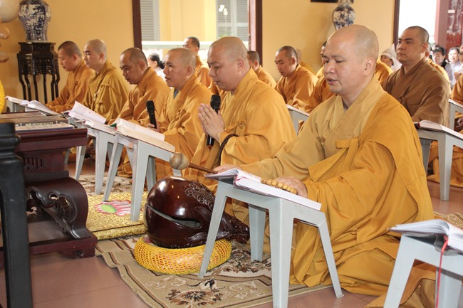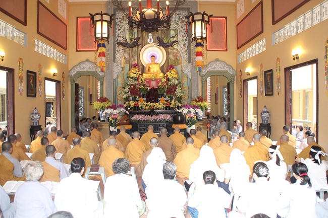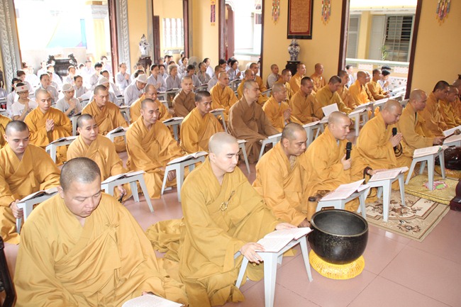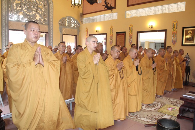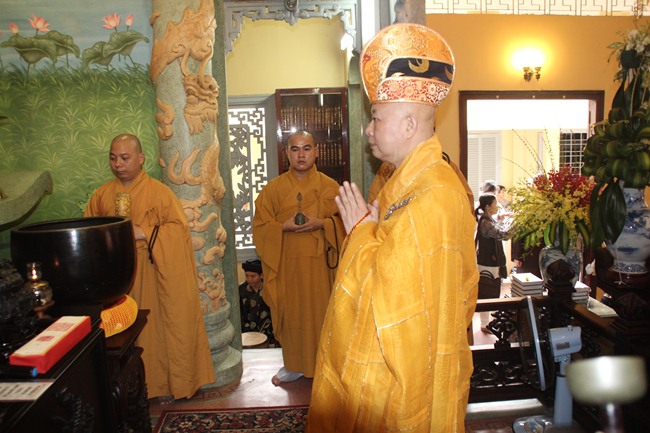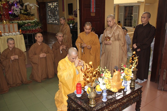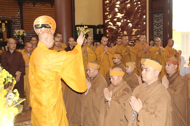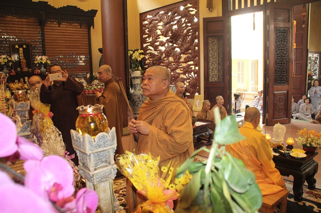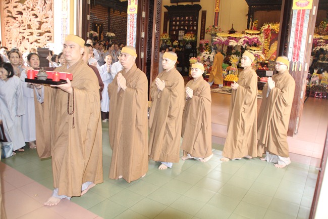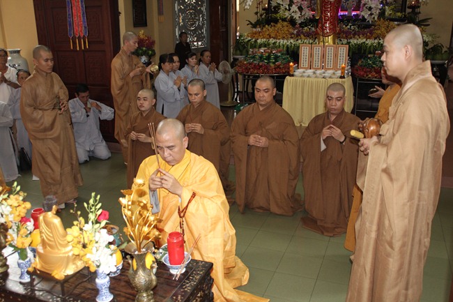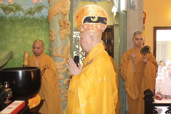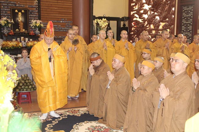 Buỗi lễ diễn ra trang nghiêm và long trọng dưới sự hướng dẫn của TT. Thích Lệ Trang, trưởng ban Nghi lễ GHPGVN TP. HCM