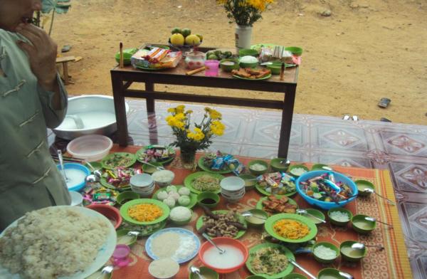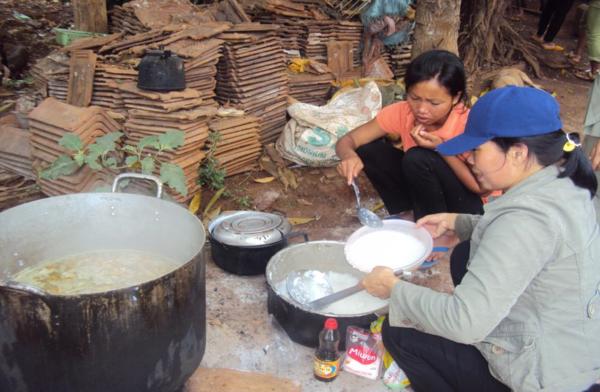 Người thì lo khiêng dọn bàn thờ , người thì lo nấu xôi, nấu chè để cúng Phật không khí thật rộn ràng cứ như ngày tết.