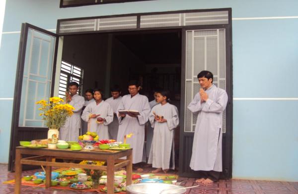 Ngôi nhà củ của anh nhỏ và làm bằng ván đã hư hao theo thời gian, nhưng chính trên nền nhà củ đó lại là nơi mà hằng đêm hoặc hằng tuần vào ngày chủ nhật bà con trong buôn cùng nhau tụ họp để lễ Phật tụng kinh. Từ lúc biết Phật pháp gia đình anh đã phát tâm dùng ngôi nhà của mình làm chổ tu tập cho bà con trong buôn làng. Sự phát tâm này là một việc làm với quyết tâm mạnh mẽ bất chấp nguy hiểm cho gia đình anh trong việc phát triển Phật pháp. Bởi trong buôn làng đa phần là theo tôn giáo khác cùng với các tập tục xưa củ nên sự canh tranh là điều không thể tránh khỏi, lời ra tiếng vào, kẻ xấu công kích gây chia rẻ để bà con trong buôn không đến nhà anh tu tập.