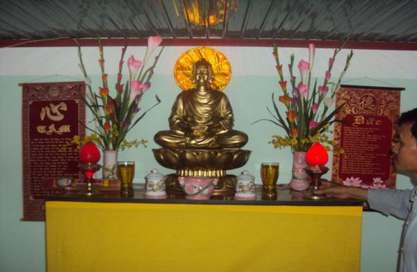 Ama Miêu chủ của ngôi nhà mới hớn hở nhưng cũng không kém phần lo lắng : “ Cả tối qua mình không nhắm cái con mắt đươc, cái bụng mình lo nhiều vì lễ đưa Phật về nhà sáng nay mình có mời thầy ở chùa Hoa Nghiêm nữa … mình làm không đúng thầy buồn cái bụng đó.. mà gia đình mình cũng buồn nữa ”.