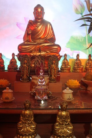 Sau khi lắng nghe thời pháp thoại về “Pháp thân bất diệt của Đức Phật”, đại chúng đã vô cùng hoan hỉ tham dự Lễ An Vị Xá Lợi Phật. Trong không khí trang nghiêm, thanh tịnh của buỗi lễ, Thượng Tọa Thích Giải Hiền đã hướng dẫn các Phật Tử tụng kinh, tán thán hạnh nguyện Từ Bi độ đời của Đức Phật Thích Ca Mâu Ni. Tiếp sau đó, mỗi Phật Tử đều được chiêm bái, đảnh lễ tháp xá lợi Phật trong niềm hoan hỉ, pháp lạc sung mãn.