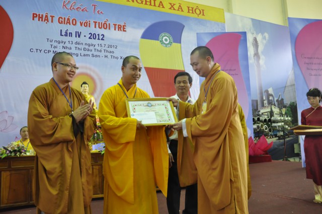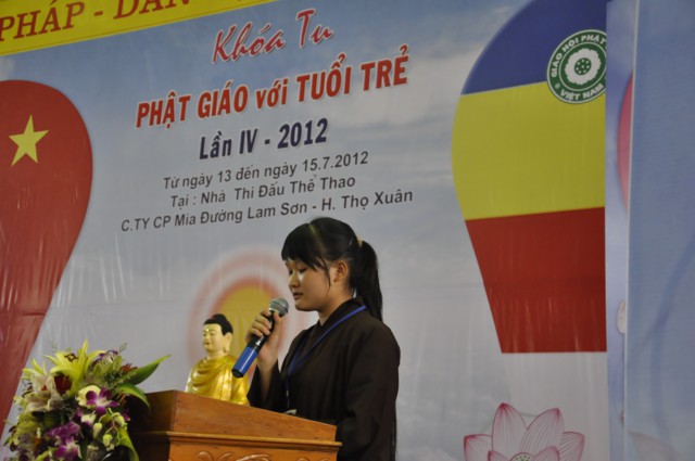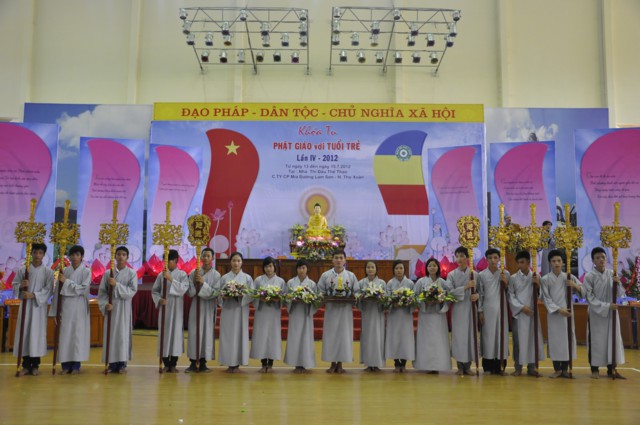 8g 30 sáng ngày 15/ 7 năm 2012, sau các chương trình chia sẻ cảm tưởng của khóa sinh, chụp ảnh lưu niệm giữa các đơn vị, văn nghệ ,là chính thức bắt đầu chương trình Bế mạc khóa tu “Phật Giáo với Tuổi Trẻ” lần thứ IV – 2012.