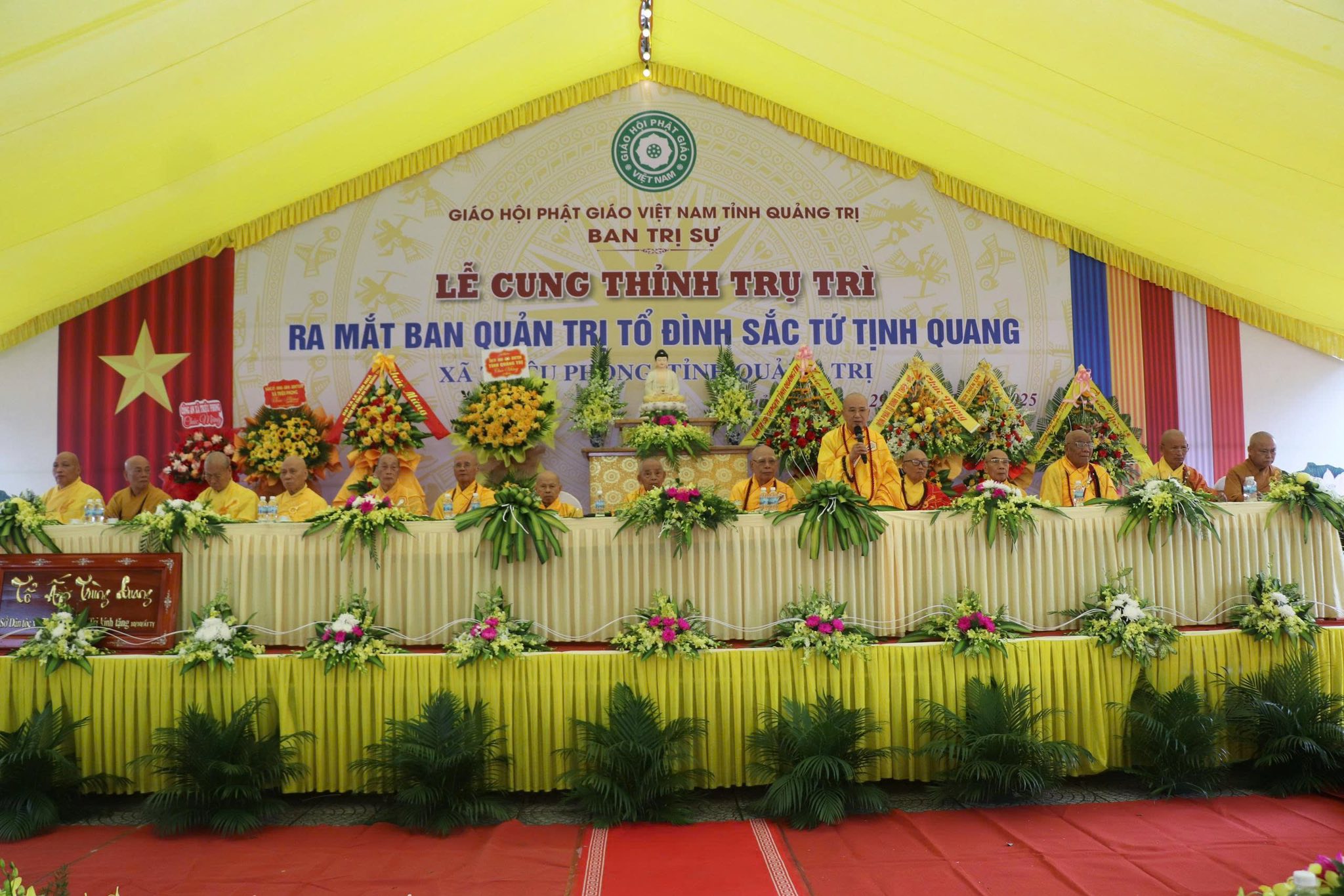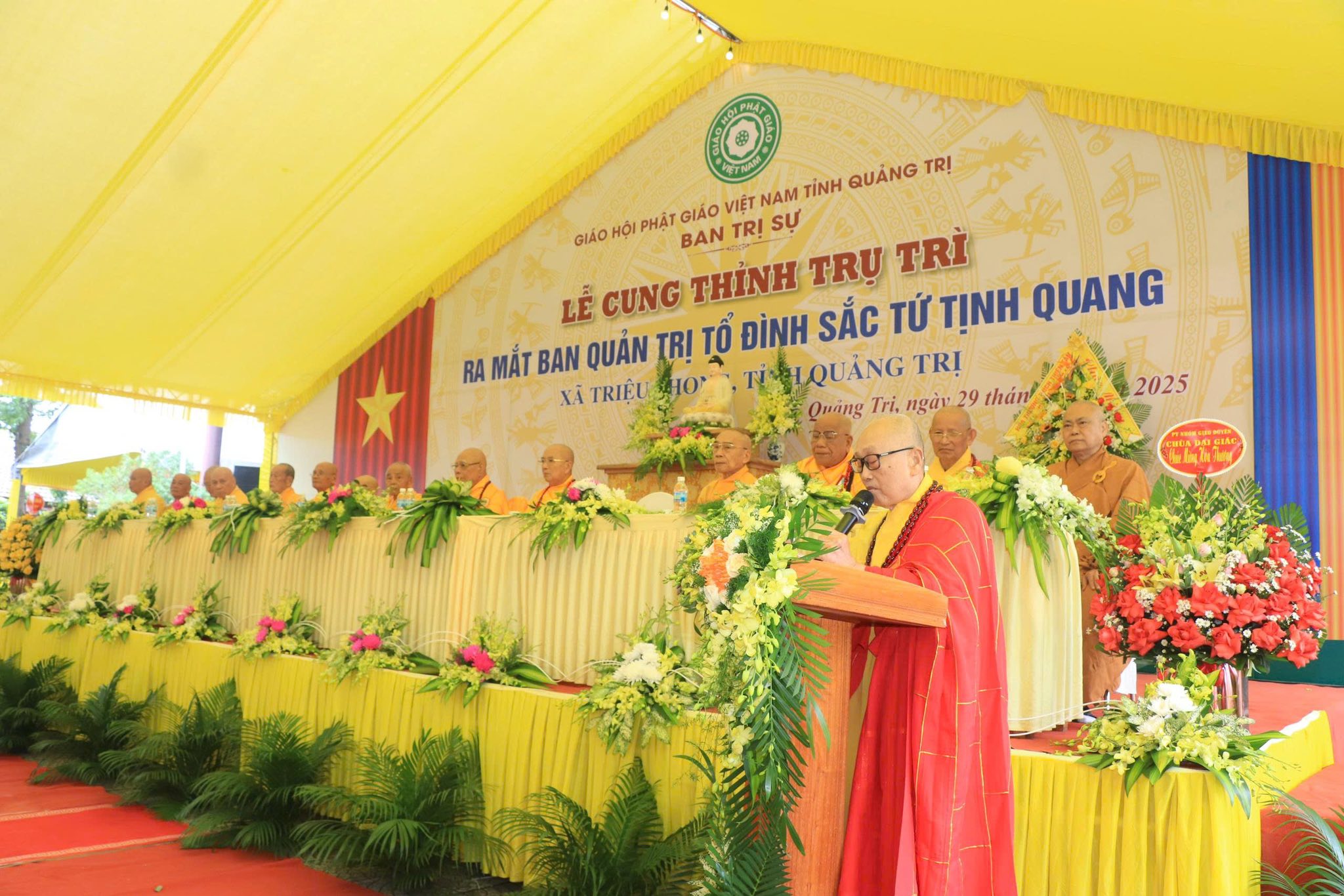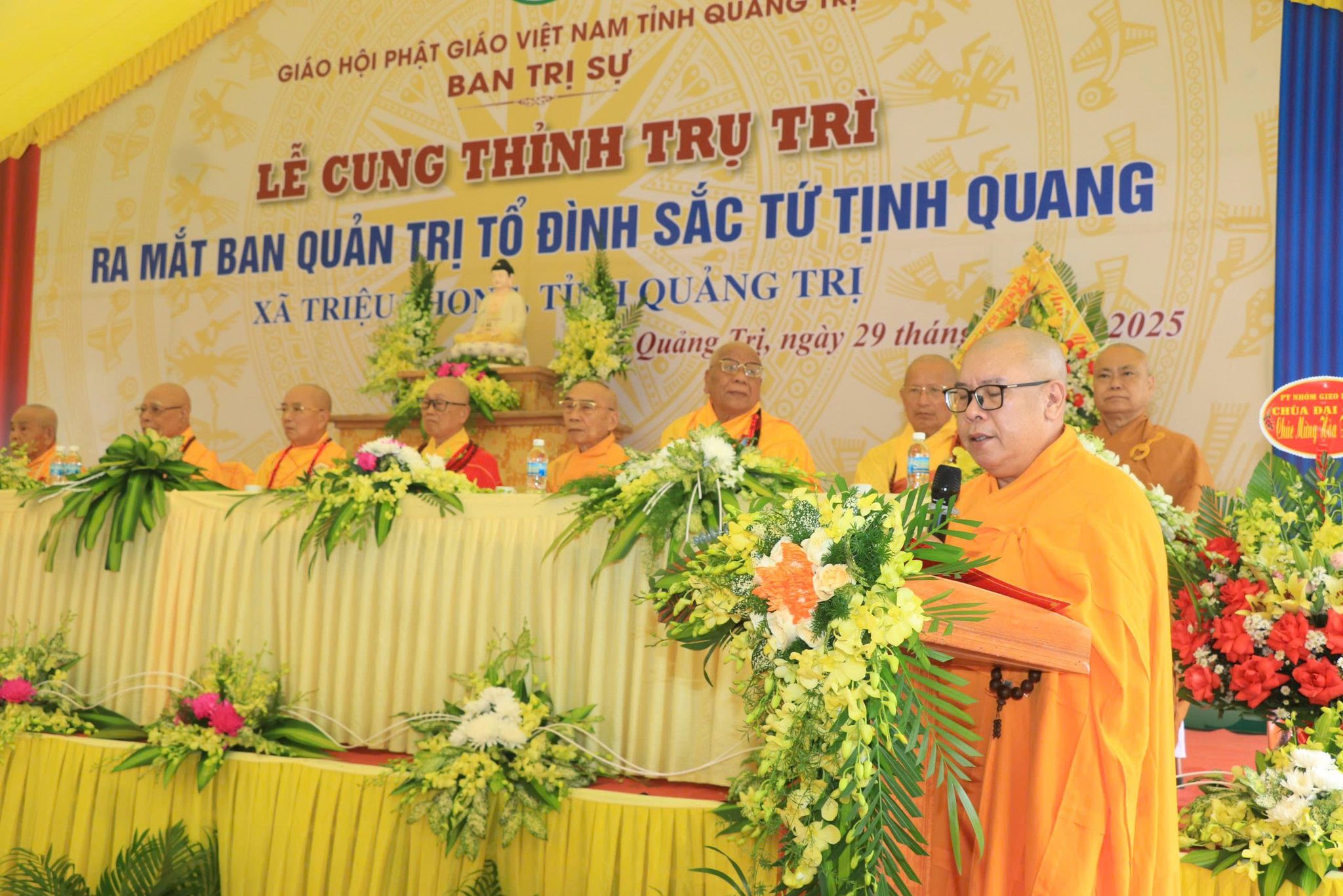 Hòa thượng nhắc lại tinh thần Hiến chương GHPGVN, cho rằng duyên lành hội đủ, Hòa thượng Tánh Nhiếp – một người con của Quảng Trị – được sự hộ trì của Hộ pháp – Long thiên, sự đồng thuận của Tăng Ni và sự ủng hộ của chính quyền nên lễ công bố và ra mắt Ban Quản trị hôm nay được thành tựu. Đây là trọng nhiệm lớn mà Phật tổ giao phó; Giáo hội tin tưởng, Tăng Ni đang ủng hộ, chính quyền quan tâm giúp đỡ. Với những nhân duyên đó, Hòa thượng sách tấn Ban Quản trị cần đồng tâm hiệp lực, thừa đương Phật sự, báo đền hồng ân Tam bảo, không cô phụ niềm tin của chư Tôn đức, lãnh đạo địa phương và Phật tử.
